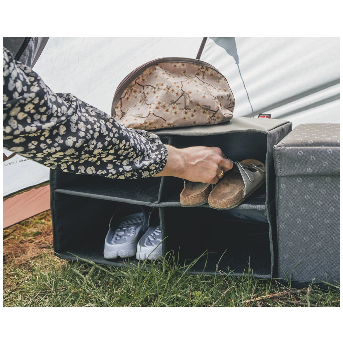 Der Camping-Schuhschrank Crantock Shoe Storage von Outwell ist die perfekte Ergänzung für den Familienurlaub in der Natur.