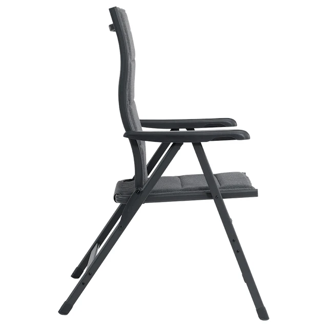 Die dicke Polsterung aus gebürstetem Polyester isoliert gut gegen Kälte, hat eine ausgezeichnete Lichtbeständigkeit und UV-Beständigkeit. Es wird durch einen hochwertigen, leichten Aluminiumrahmen ergänzt. Dies ist ein Garant für Langlebigkeit. Ein Sicherheitsverschluss verhindert ein versehentliches Zusammenklappen. Der Stuhl hat bequeme Armlehnen und eine hohe ergonomische Rückenlehne für optimale Nackenunterstützung. Die Rückenlehne kann in eine der sieben Positionen verstellt werden.