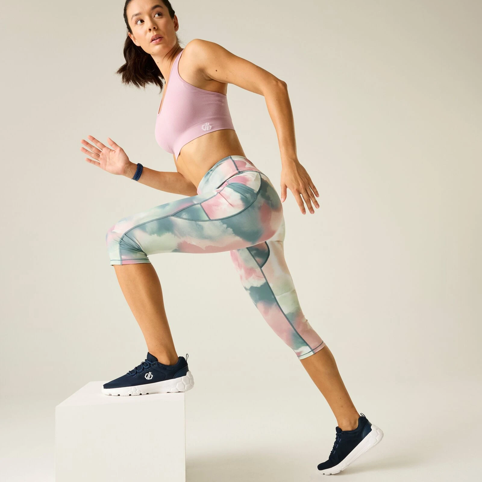 Damen Dreiviertel-Leggings Influential II 3/4 Legging von Dare 2b. Das leichte und flexible Gewebe leitet Schweiß ab, trocknet schnell und sorgt so für maximalen Komfort bei jeder Bewegung.