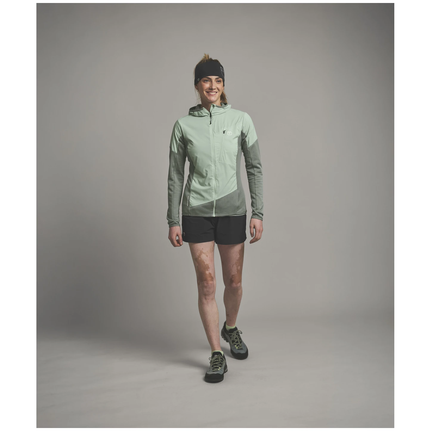 Die Damen Hybridjacke Ortovox Trace Hybrid Jacket ist ein technisches Kleidungsstück, das Sie bei schnellem Tempo in den Bergen nicht im Stich lässt, egal ob Sie zügig wandern oder klettern. Sie ist so konzipiert, dass sie Ihnen genau das bietet, was Sie im Moment brauchen – entweder als wärmende Zwischenschicht unter einer Membran oder als eigenständiger Windschutz.