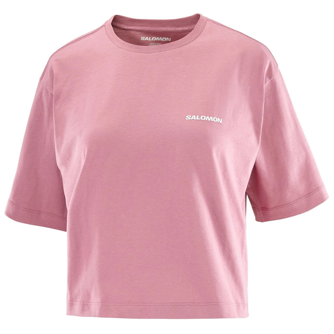 Salomon Short Tee ist ein Damen-T-Shirt mit kurzen Ärmeln aus Bio-Baumwolle, ideal für den Alltag und einen entspannten Freizeitstil.