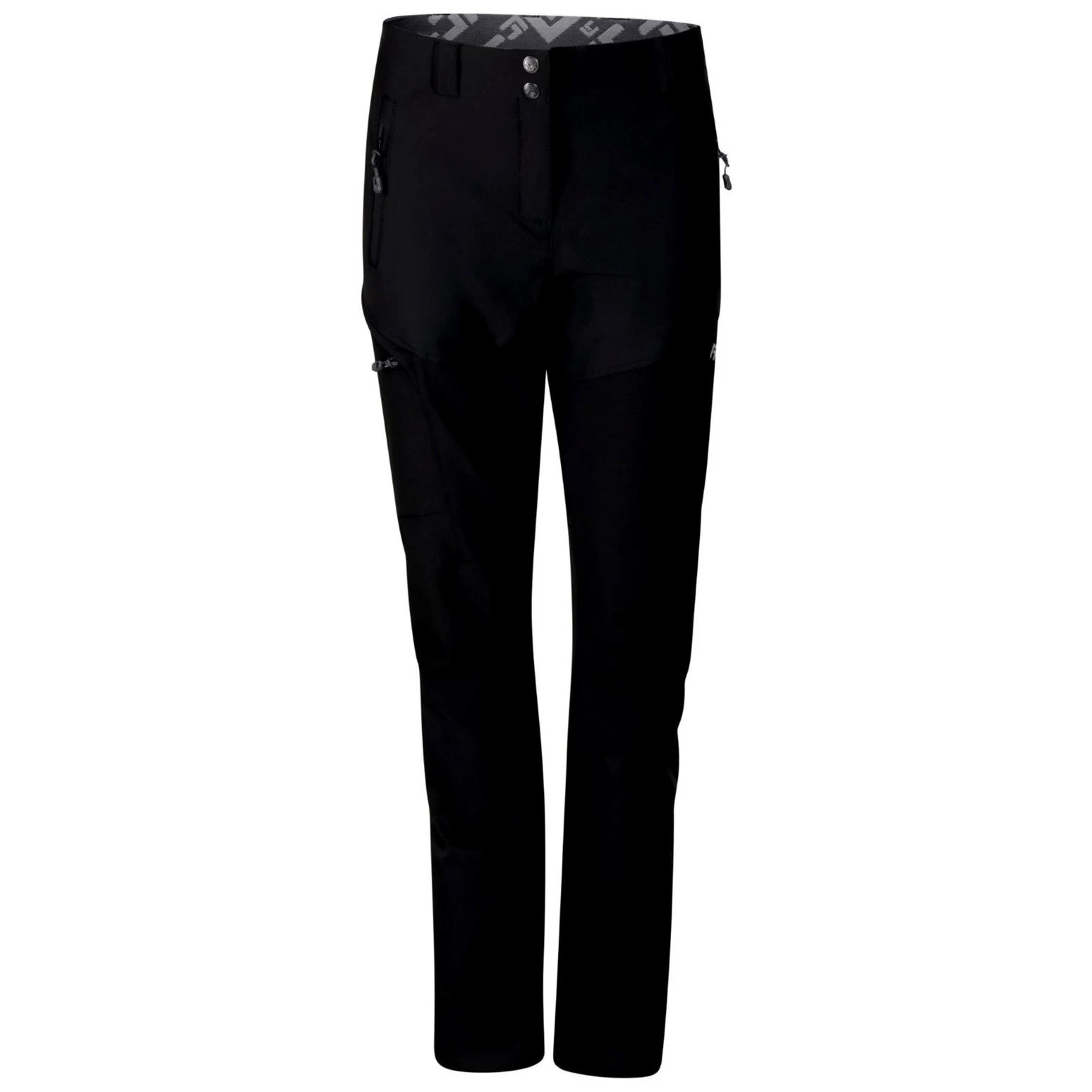 Der elastische Bund mit Schlaufen ermöglicht die Verwendung eines Gürtels, während zwei vordere und eine seitliche Tasche auch mit einem Klettergurt leicht zugänglich bleiben. Die innovative Technologie der elastischen Nähte sorgt für eine perfekte Anpassung an die Figur.