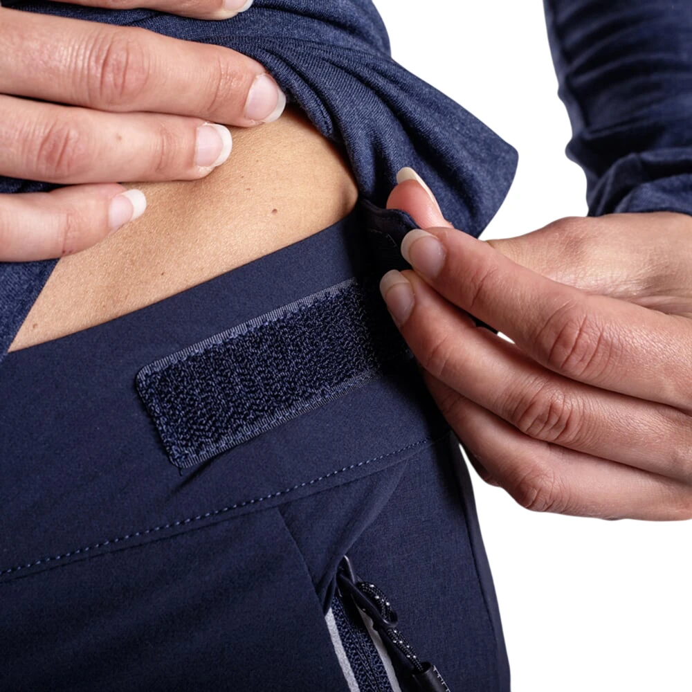 Der passgenaue Schnitt mit vorgeformten Knien schränkt Sie in keiner Weise in Ihrer Bewegung ein. In der Taille befinden sich Klettverschlüsse, mit denen sich der Umfang leicht regulieren lässt. Die Hose hat vorne Reißverschlusstaschen zur sicheren Aufbewahrung von Kleinigkeiten.