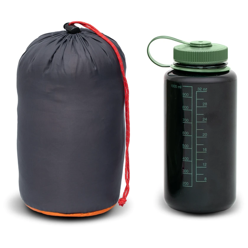 Darüber hinaus verfügt der Schlafsack über einen Druckknopf am Hals, interne Kordelzüge und eine Innentasche. Das Material enthält kein PFAS und die Daunen entsprechen dem Responsible Down Standard, das gute Bedingungen für die Tierhaltung garantiert.