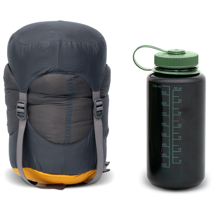 Der Schlafsack verfügt außerdem über einen verstellbaren elastischen Taillenkordelzug, der für bessere Isolierung sorgt, wenn Sie im Schlafsack sitzen, sowie über Aufhängeschlaufen. Das Material enthält kein PFAS und die Daunen entsprechen dem Responsible Down Standard, das gute Bedingungen für die Tierhaltung garantiert.