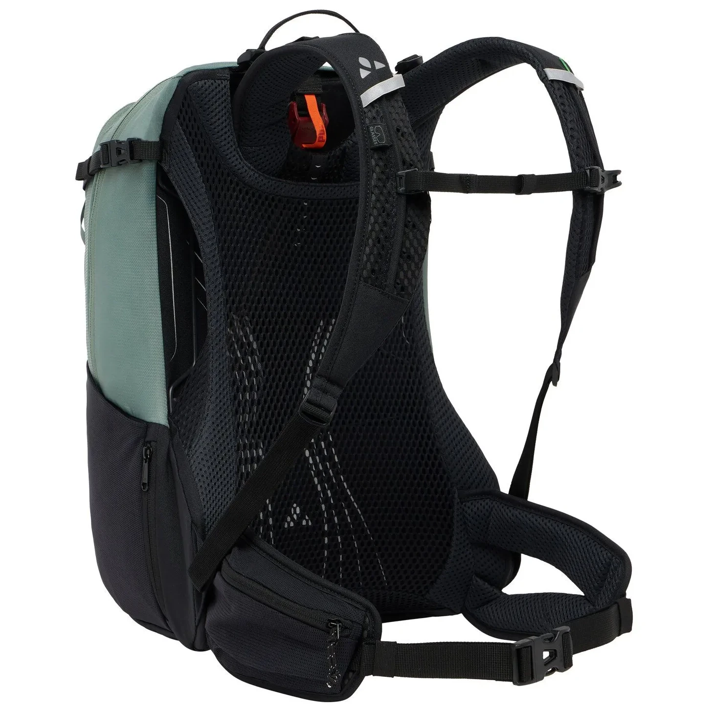 Das Mesh-Rückensystem schafft Platz zwischen Ihrem Rücken und dem Rucksack. Die Luft kann frei zirkulieren, was die Rückenbelüftung verbessert und die Schweißverdunstung beschleunigt. Der Nachteil ist eine leichte Verringerung des Innenvolumens und ein schlechterer Schwerpunkt.