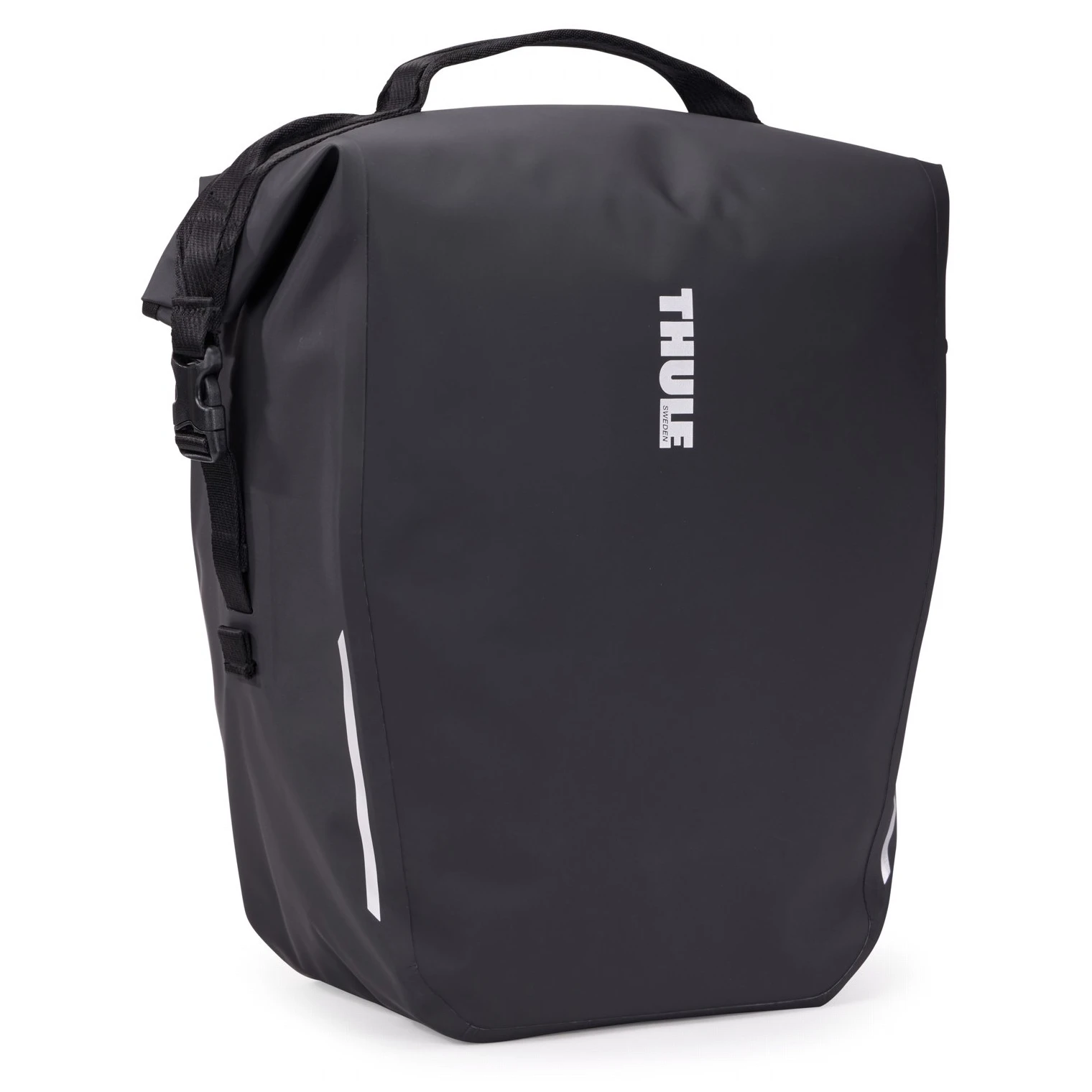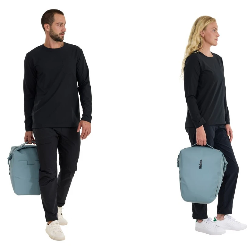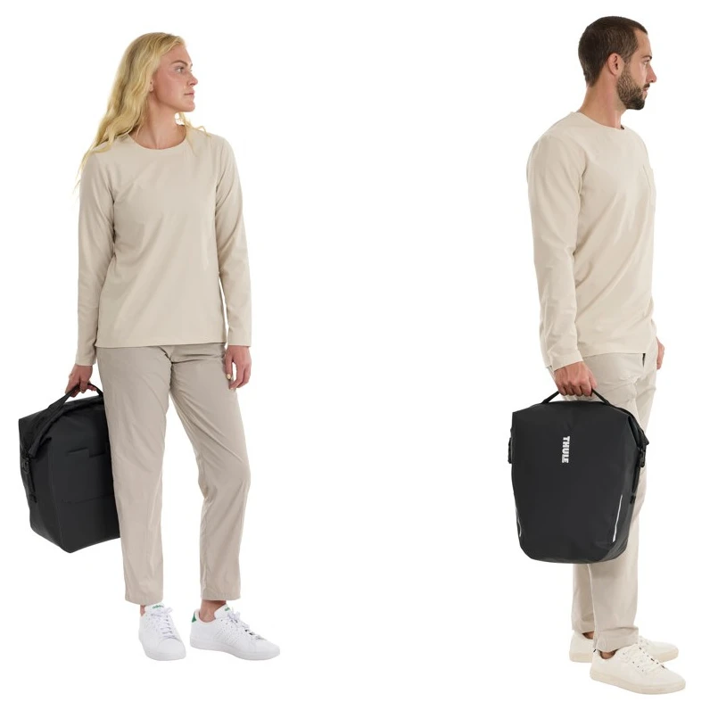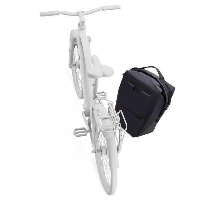 Fahrradtasche Shield Pannier 22L der Marke Thule mit Rolltop-Verschluss, wasserfesten Materialien und elegantem Design, dank dem sie auch außerhalb des Fahrrads bequem zu tragen ist. Konstruktion mit IPX4-Zertifizierung schützt Ihre Wertsachen, während reflektierende Details die Sichtbarkeit im Straßenverkehr erhöhen.