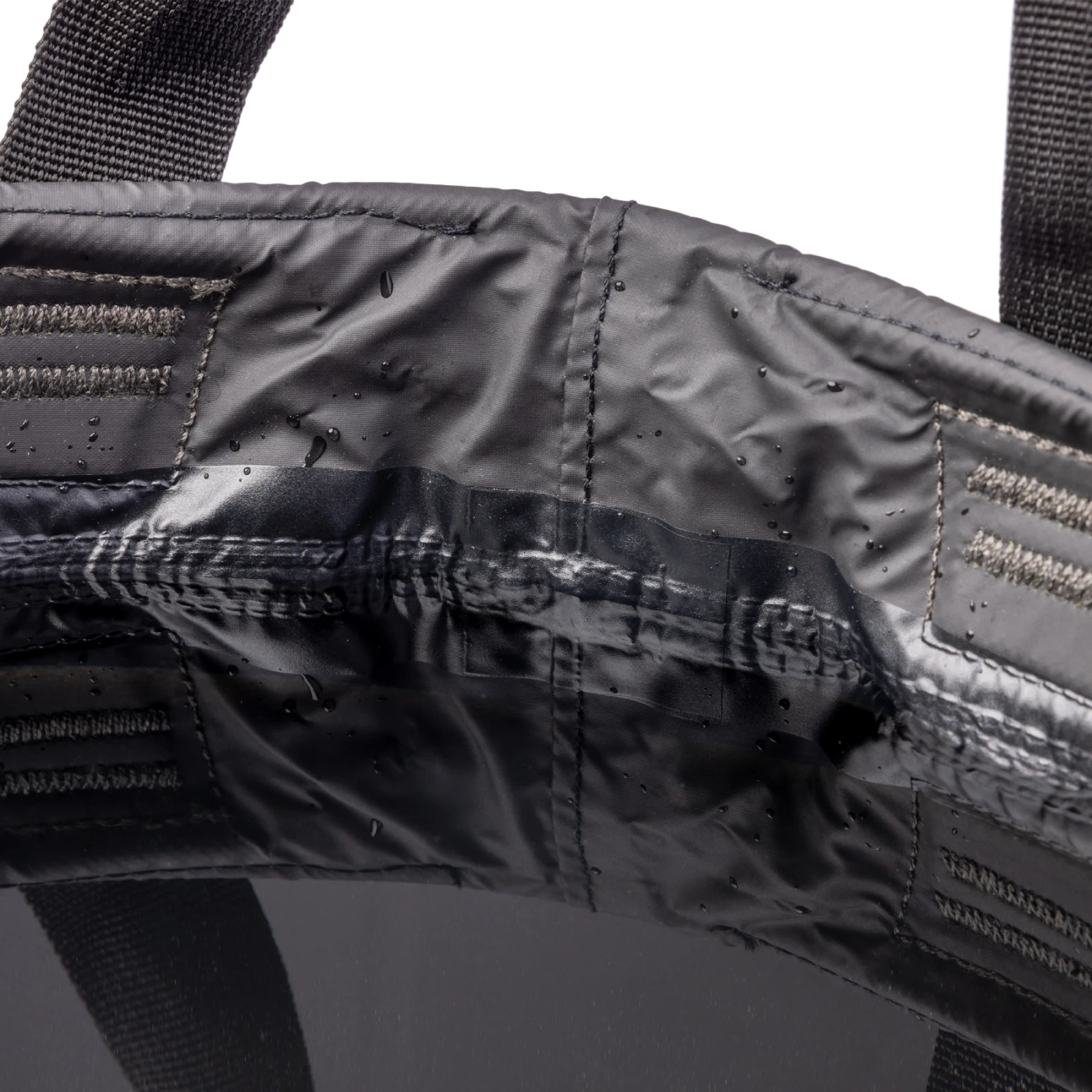Das Material besteht aus wasserabweisendem 70D recyceltem Nylon, das nach RCS und bluesign® zertifiziert ist und ohne PVC und PFAS-Chemikalien hergestellt wurde. Die schwarze Innenseite beschleunigt das Trocknen und erhöht die Widerstandsfähigkeit bei täglichem Gebrauch.