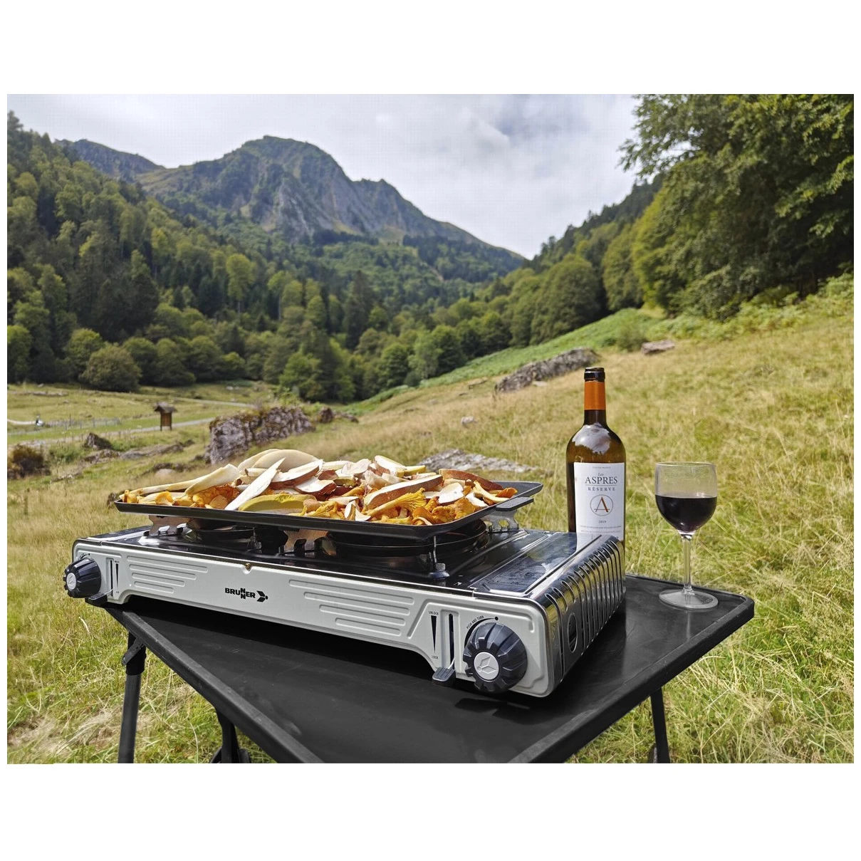 Der Gaskocher mit 2 Brennern und Grillplatte Devil Double Grill von Brunner, ideal zum Kochen und einfach zu transportieren. Im Lieferumfang enthalten sind ein Edelstahl-Rost für die stabile Platzierung von Töpfen und Pfannen sowie eine Grillplatte aus Aluminiumdruckguss mit glatter, gerippter Antihaftoberfläche.