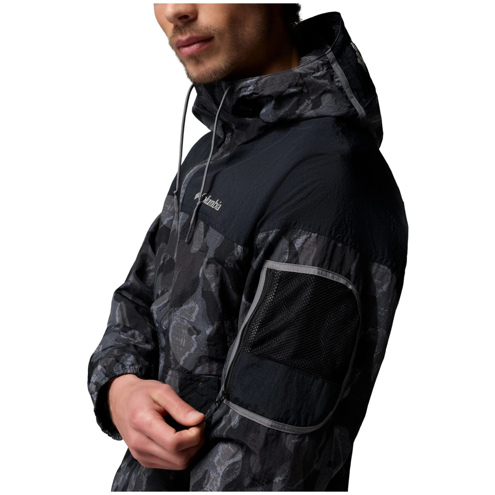 Die Jacke verfügt über einen verstellbaren Saum mit Kordelzug, der eine individuelle Anpassung ermöglicht, sowie eine elastische Kapuze und Bündchen, die einen besseren Schutz vor Wind und Regen bieten. Die Reißverschlusstaschen bieten einen sicheren Ort zur Aufbewahrung von Kleinigkeiten, während die Reißverschlusstasche am Ärmel einen schnellen Zugriff auf kleine Gegenstände ermöglicht.