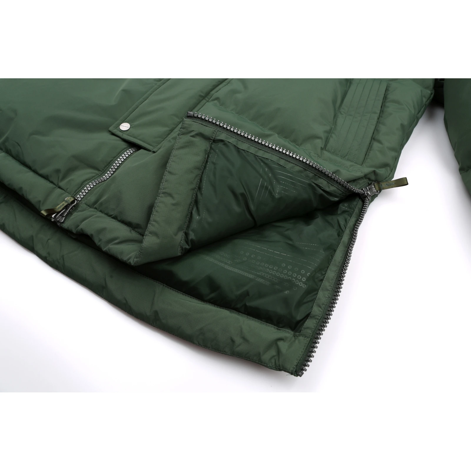 - DWR wasserabweisende Außenbehandlung der obersten Schicht des Bekleidungsmaterials verhindert das Durchdringen von Feuchtigkeit, sodass Wasser sofort in Form von Perlen von der Oberfläche abperlt