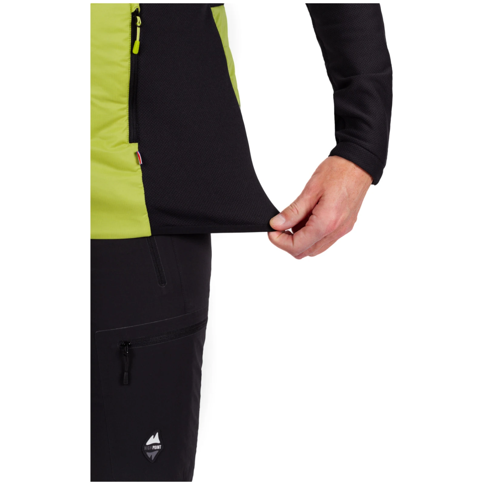 Die High Point Brilant Hybrid Herrenjacke ist eine vielseitige, isolierte Jacke mit Hybridkonstruktion, die für aktive Bewegung bei kühleren Bedingungen entwickelt wurde. Sie kombiniert drei hochwertige Materialien – leichtes und winddichtes Pertex® Quantum Air, strapazierfähiges Tecnostretch mit Keramikdruck und Thindown® Active Daunenisolierung mit Sorona® – die für hervorragenden Wärmekomfort, Atmungsaktivität und mechanische Beständigkeit sorgen.