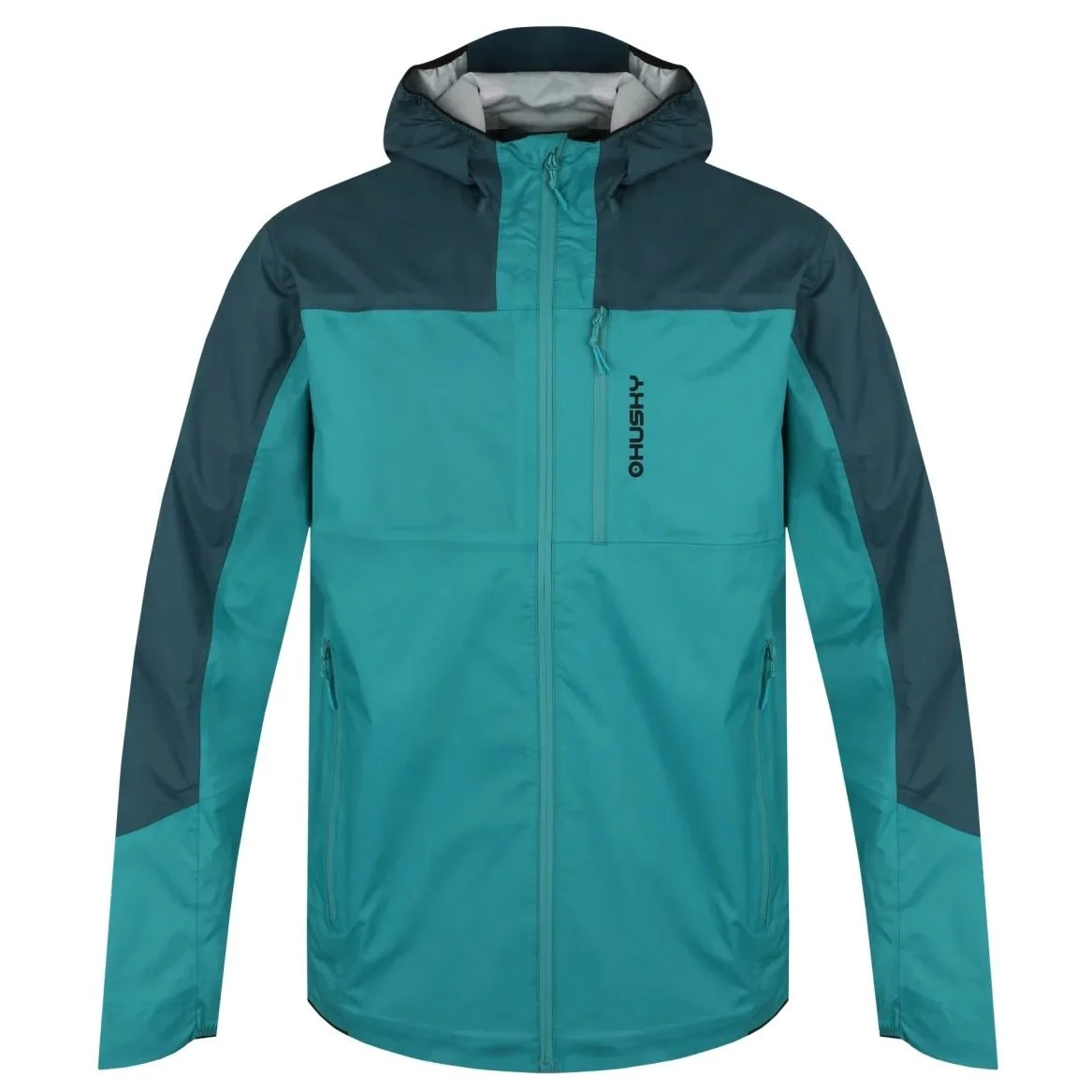 Hochwertiges 3-Lagen-Material HUSKY PRO TECH STRETCH 10.000 für Wasserbeständigkeit und hohe Atmungsaktivität. Die einzigartigen Eigenschaften der Membran mit einer Wassersäule: 10.000 mm H2O und Atmungsaktivität: 10.000 g/m2/24 h verhindern das Eindringen von Wassermolekülen und ermöglichen einen einfachen Feuchtigkeitsabtransport. Die wasserabweisendeDWR -Außenbehandlung der obersten Schicht des Kleidungsmaterials verhindert das Durchdringen von Feuchtigkeit, sodass Wasser sofort in Form von Perlen von der Oberfläche abperlt.