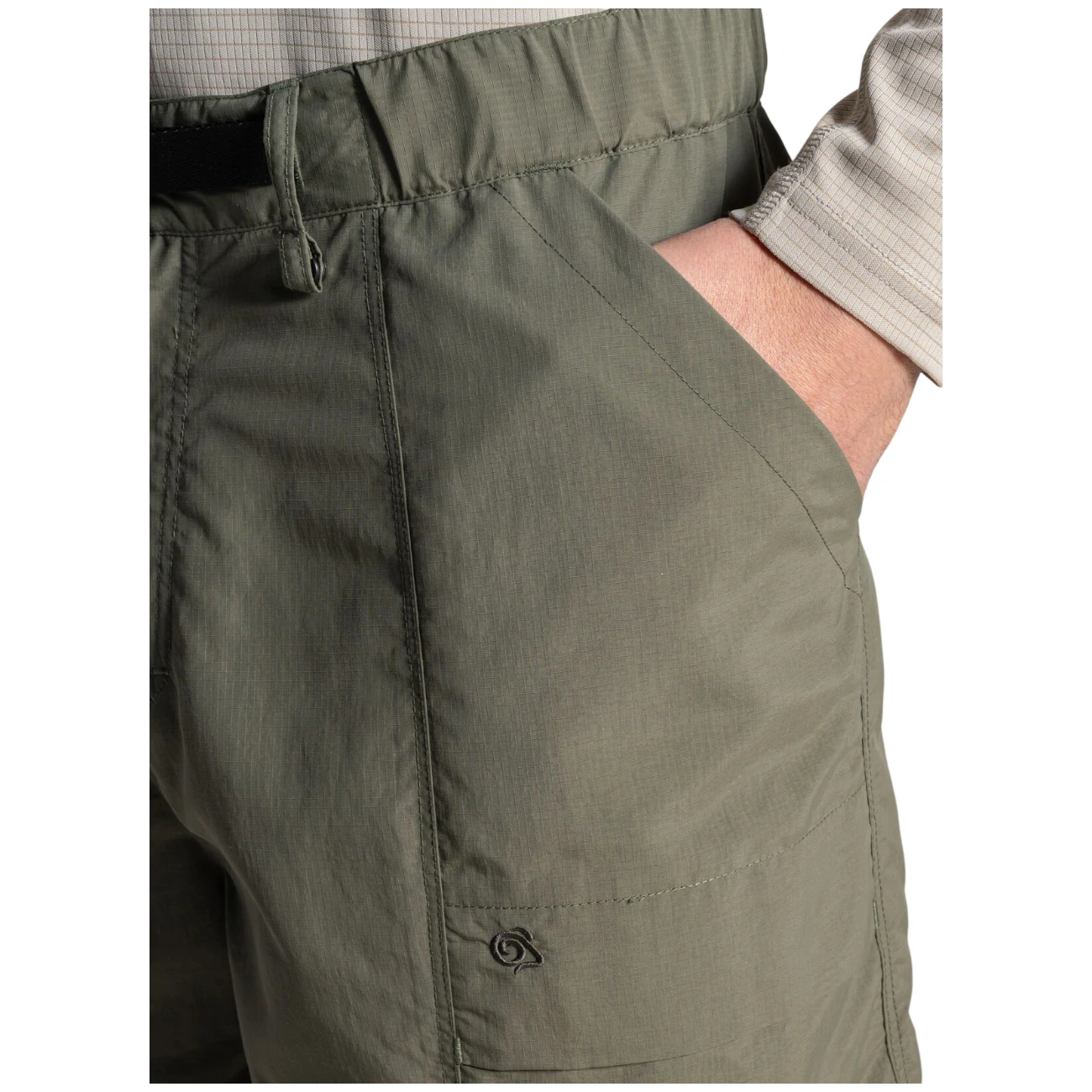 Bietet einen lockeren Schnitt bis zum Knie und einen Bund mit integriertem Gürtel. Die Shorts leiten Feuchtigkeit vom Körper ab und trocknen schnell. Das Material enthält die pflanzliche Behandlung NosiLife, die Körpergerüche eliminiert und neutralisiert, schützt den Benutzer vor lästigen Insekten und bietet gleichzeitig UV-Schutz. Innen befinden sich Schlaufen zum einfachen Trocknen. Insgesamt fünf Taschen, davon eine mit Reißverschluss, sind ideal zur Aufbewahrung persönlicher Gegenstände, die Sie griffbereit haben müssen.
