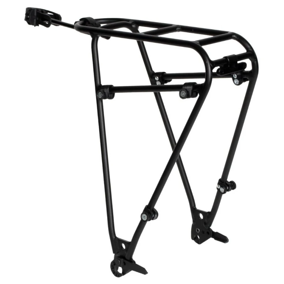 Die stabile Aluminiumkonstruktion bietet hohe Stabilität bei einer Belastung von bis zu 20 kg, sodass Sie auch auf längeren Strecken Ausrüstung sicher transportieren können. Die integrierte obere Ladefläche bietet zusätzlichen Stauraum und ist gleichzeitig mit Ortlieb-Taschen mit Quick-Lock-System kompatibel, die fest und ohne unerwünschte Bewegung halten.