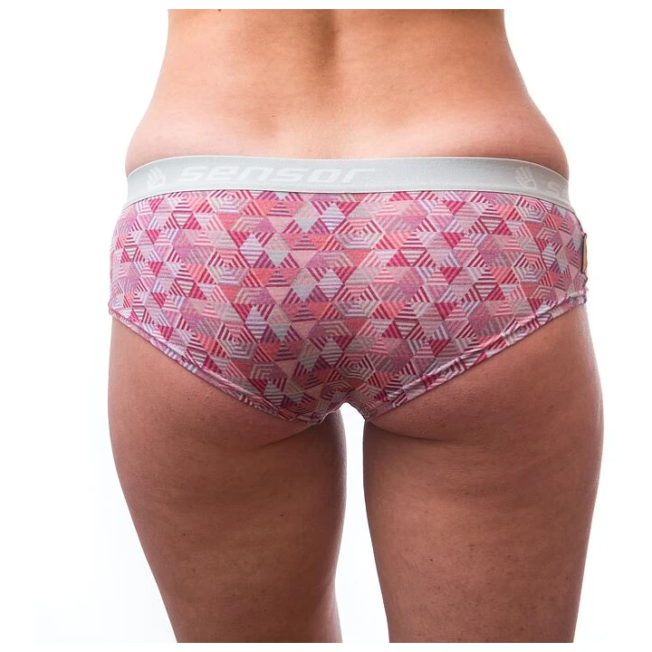 Damen Funktionsslips Sensor Impress aus absolut funktionellem Material in neuartigem Design, das Funktionalität und Schönheit vereint. 100% Merinowolle erhält dabei durch einen einzigartigen Herstellungsprozess seine exklusiven Eigenschaften. Die auf der fein gestrickten Wolle aufgebrachte Polyurethan-Schicht verhindert unangenehmes Brennen beim Schwitzen und schützt das aufgedruckte Muster zudem beim Waschen. Die perfekte Wahl für jede Art von Veranstaltung.