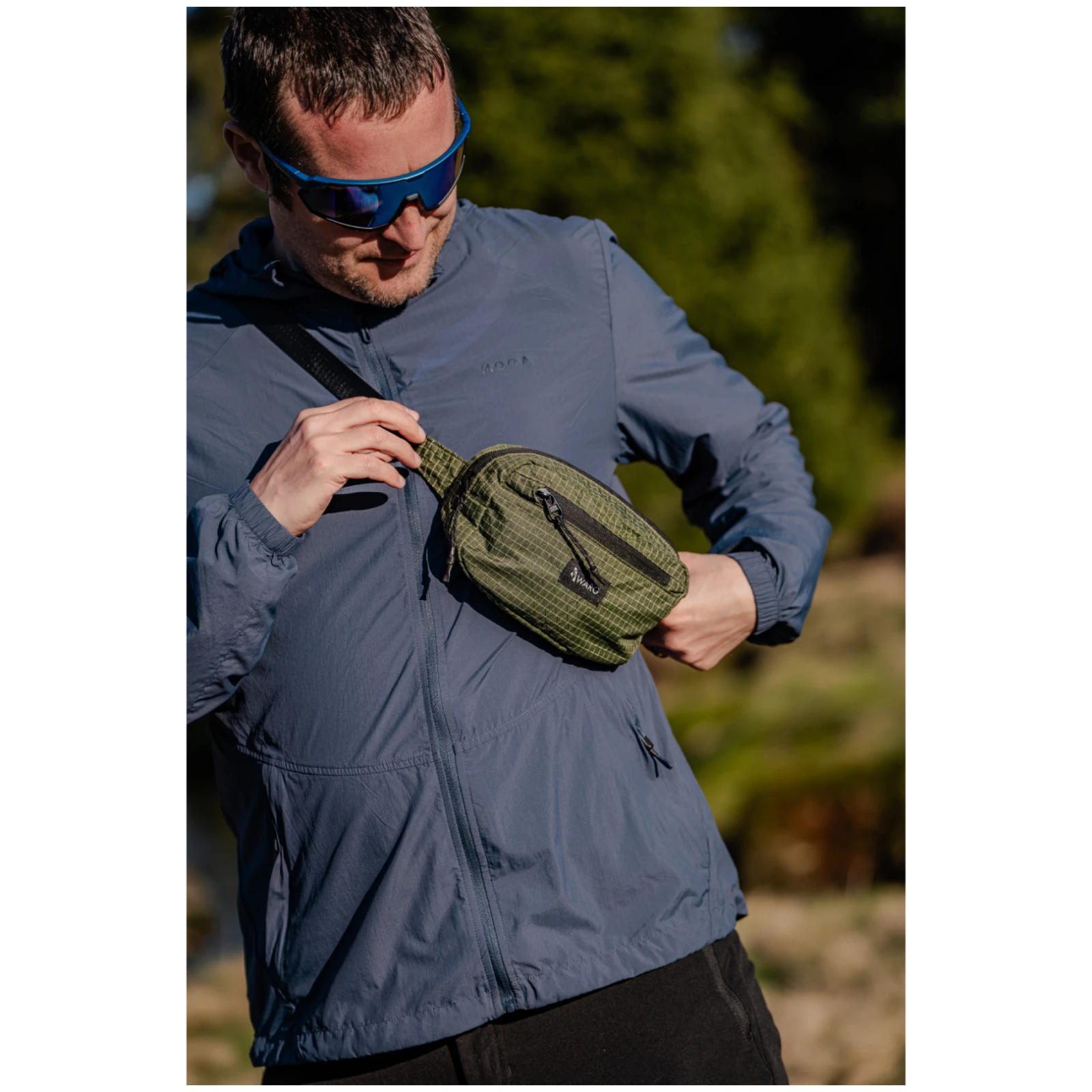 Die Tasche bietet drei praktische Fächer, davon eines versteckt auf der Innenseite zur sicheren Aufbewahrung von Dokumenten, Geld oder Wertgegenständen. Das Hauptfach bietet ausreichend Platz für Ihr Telefon, Schlüssel oder andere Notwendigkeiten. Dank verstellbarem Gurt können Sie sie um die Taille oder über die Schulter tragen, sodass sie sich leicht an verschiedene Situationen und Aktivitäten anpasst.