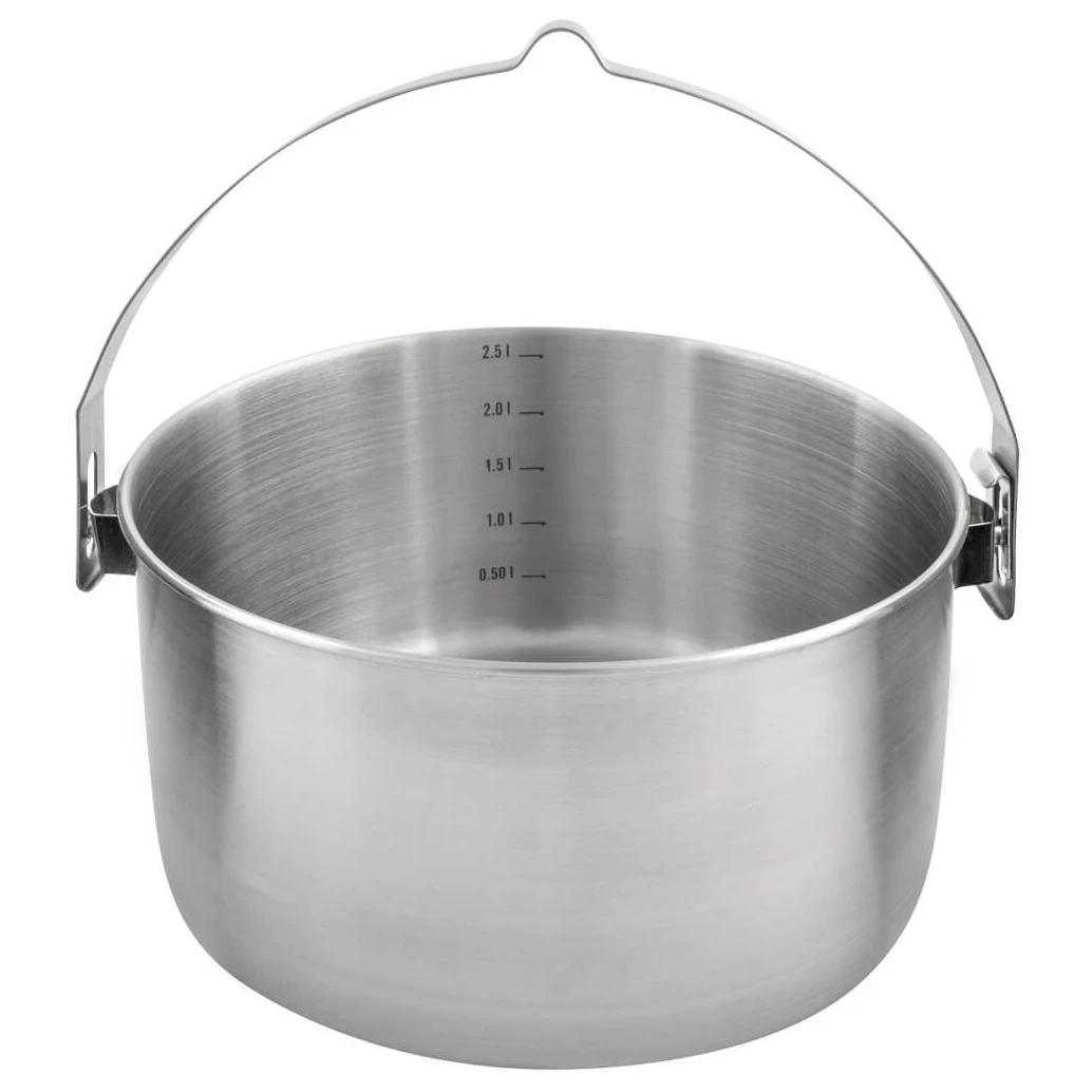 Der Kettle II 2,5 l von Tatonka ist ein praktischer Edelstahltopf mit einem Volumen von 2,5 Litern, den Sie bei jedem Outdoor-Kochen zu schätzen wissen werden. Er ist aus hochwertigem 18/8-Stahl gefertigt, robust, lebensmittelecht und völlig ungiftig, PFC-/PFAS-frei. Dank seiner robusten Konstruktion ist er praktisch unzerbrechlich und leicht zu reinigen, wodurch er sich für Trekking, Camping und Festivals eignet.