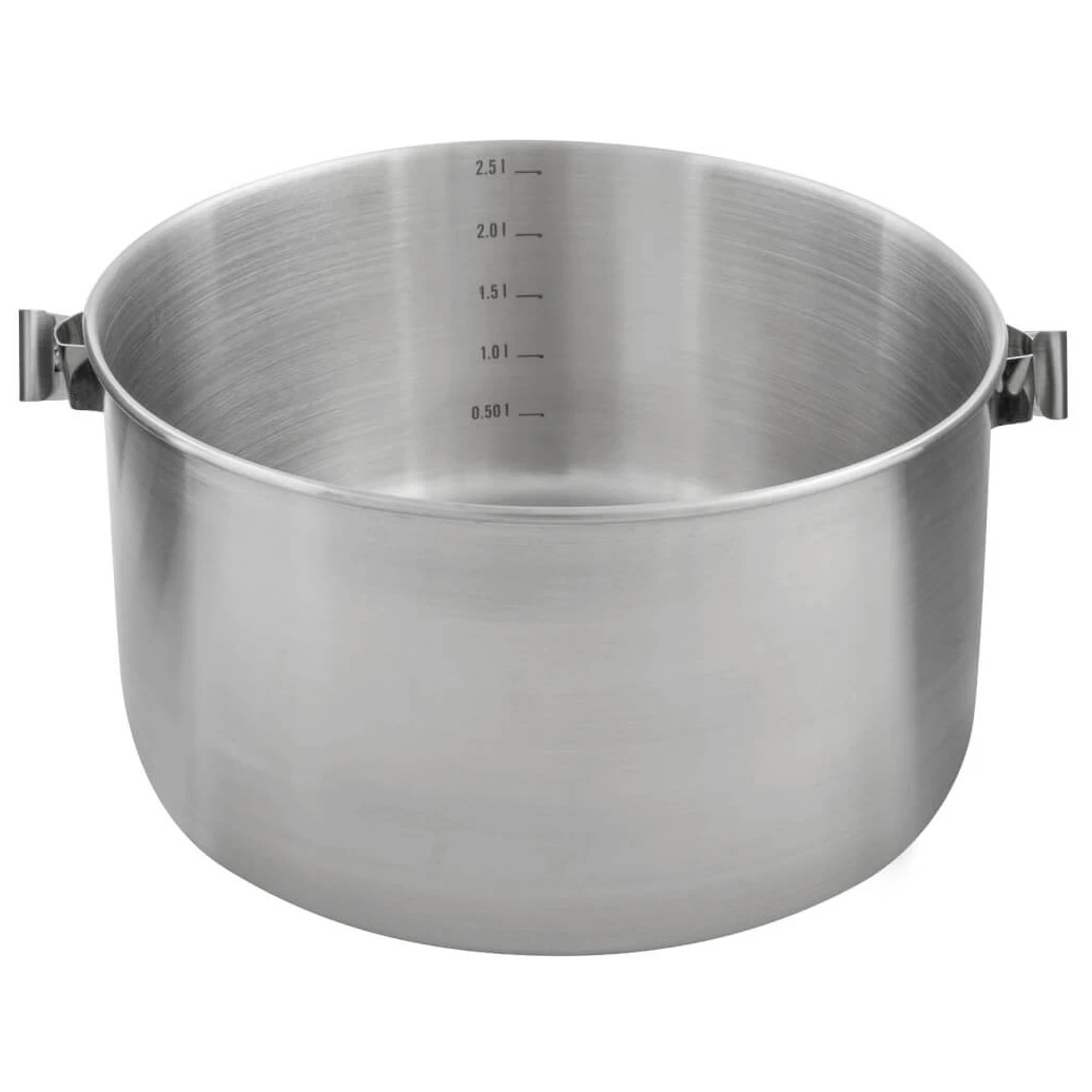 Der Deckel des Topfes hat ein integriertes Sieb, das das Abgießen von Wasser aus Nudeln oder Gemüse erleichtert. Im Inneren des Behälters befindet sich eine Messskala, sodass Sie Wasser oder Zutaten genau nach Rezept dosieren können. Dank seiner Widerstandsfähigkeit, der cleveren Details und des Volumens von 2,5 Litern wird er zu einem zuverlässigen Helfer auf all Ihren Reisen.