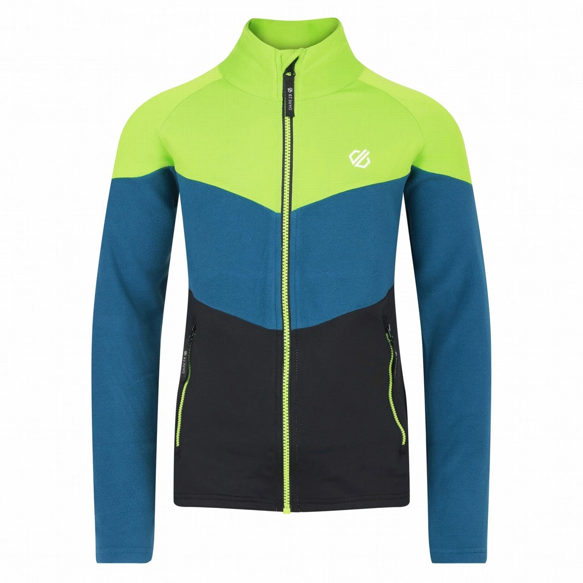 Kinder-Sweatshirt mit durchgehendem Reißverschluss und höherem Stehkragen Dare 2b Emergent III Core St ist ein praktisches Kleidungsstück für Ausflüge, Spaziergänge in der Natur und den Spielplatz.
