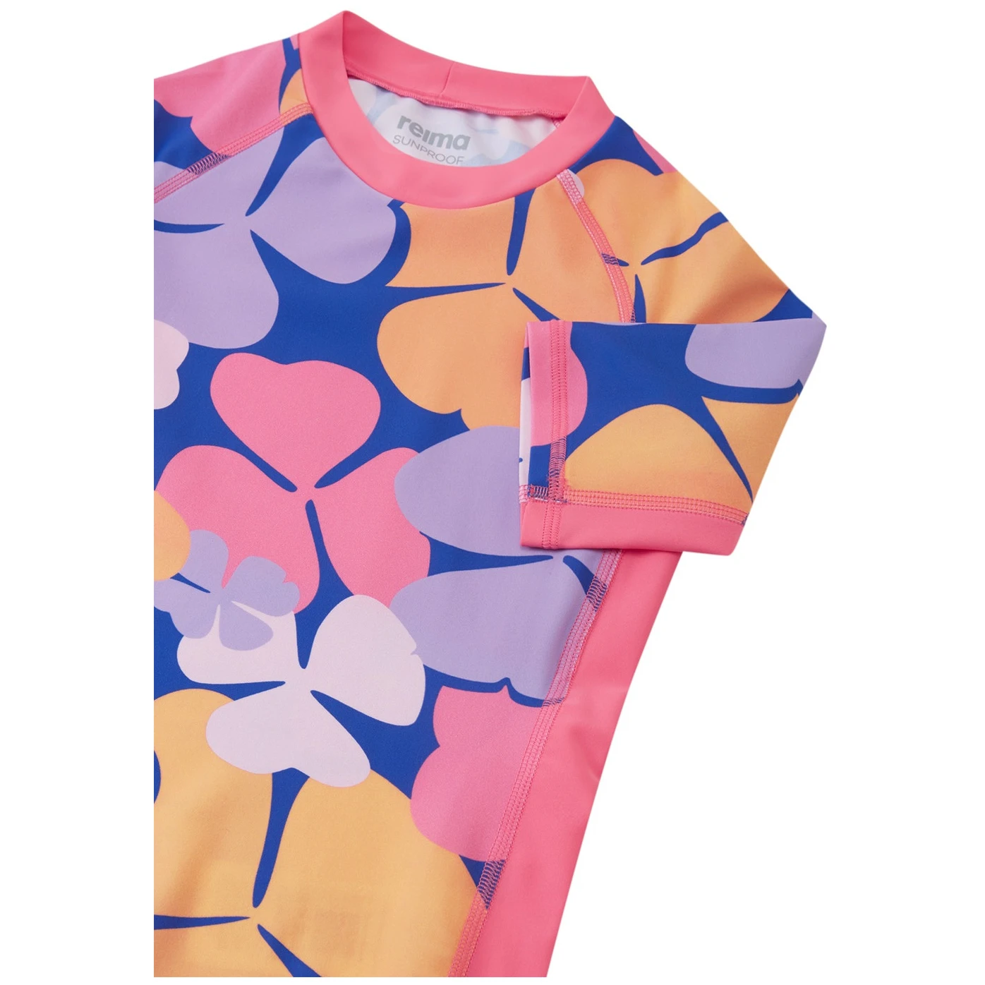 Das Reima Joonia wurde für sicheren und bequemen Aufenthalt in der Sonne, am Wasser und bei sportlichen Aktivitäten entwickelt. Es besteht aus dehnbarem SunProof+ Jersey-Material, das zu 80 % aus recyceltem Polyamid und zu 20 % aus Elasthan besteht, wodurch das T-Shirt leicht, elastisch und angenehm zu tragen ist. Das Material bietet UV-Schutz 50+ gemäß EN 13758-1 +A1 und schützt die Haut vor UVA- und UVB-Strahlung.