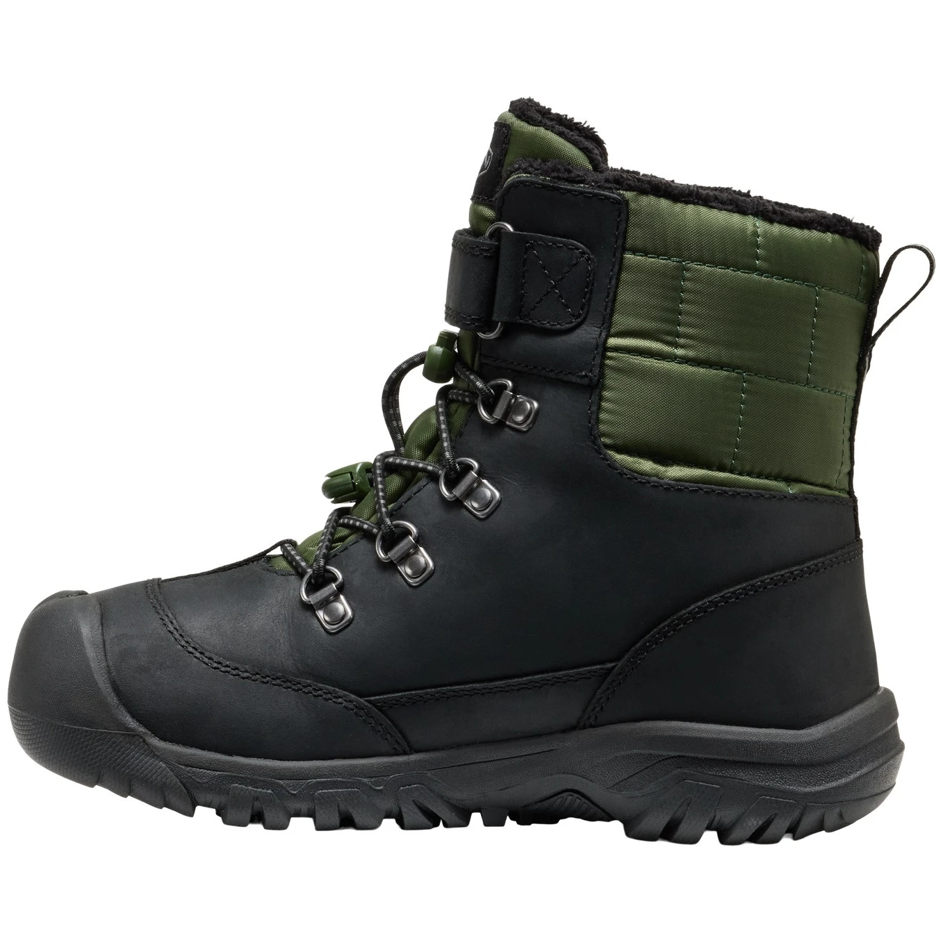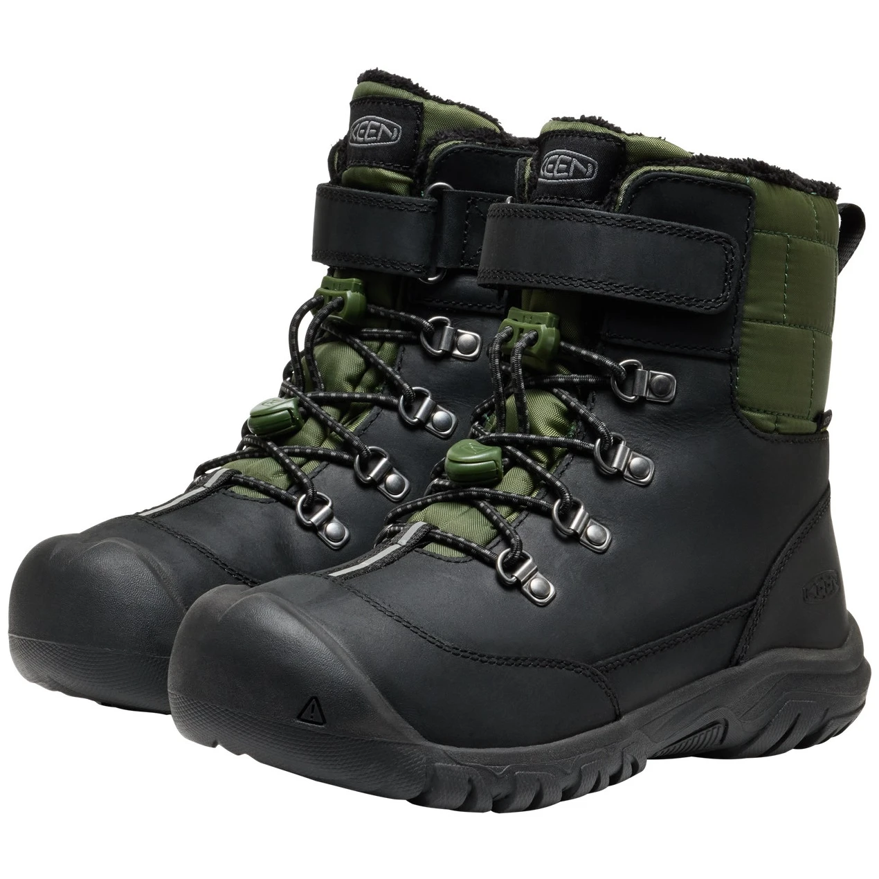 Kanibou WP sind gut isolierte Kinder-Winterstiefel der Marke Keen. Das Obermaterial besteht aus hochwertigem, wasserdichtem und ökologisch zertifiziertem Leder, das zusammen mit der KEEN.DRY-Membran und der PFAS-freien Imprägnierung für perfekten Schutz auch bei Nässe sorgt. Ein Fleecefutter mit höherem Flor und KEEN-Technologie sorgt für ausreichend Wärmekomfort .WARM bis -32 °C und eine Thermal Heat Shield-Einlegesohle, die die Wärme speichert. Die Innenseite des Schuhs ist mit der ökologischen ECO ODOR CONTROL-Technologie zur Geruchsreduzierung behandelt. Die KEEN.FUSION Gummisohle mit hochwertigem Profil verhindert ungewolltes Ausrutschen und ist zugleich leicht und langlebig. Ein Schnürsystem mit Kabel und Klettverschluss sorgt für problemloses Anziehen.