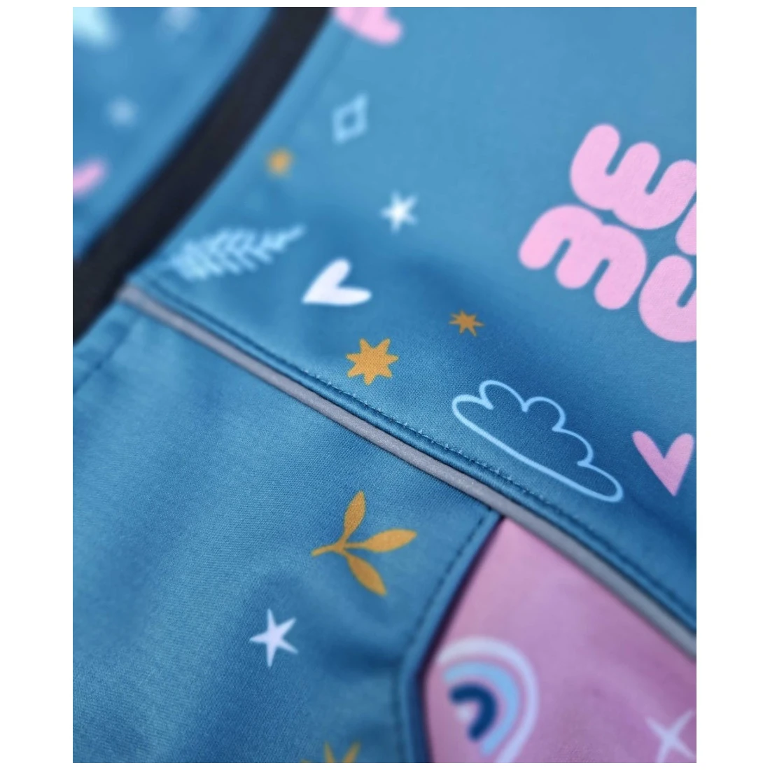 Die einzigartigen Designs werden im Sublimationsdruck auf Softshell gedruckt, wobei das Material unter hohem Druck zusammengepresst wird. Dadurch kann sich der Softshell vorübergehend dünner anfühlen. Dennoch ist das Material weiterhin für kaltes Wetter geeignet. Die Materialstärke kehrt nach dem ersten Waschen in ihren ursprünglichen Zustand zurück.