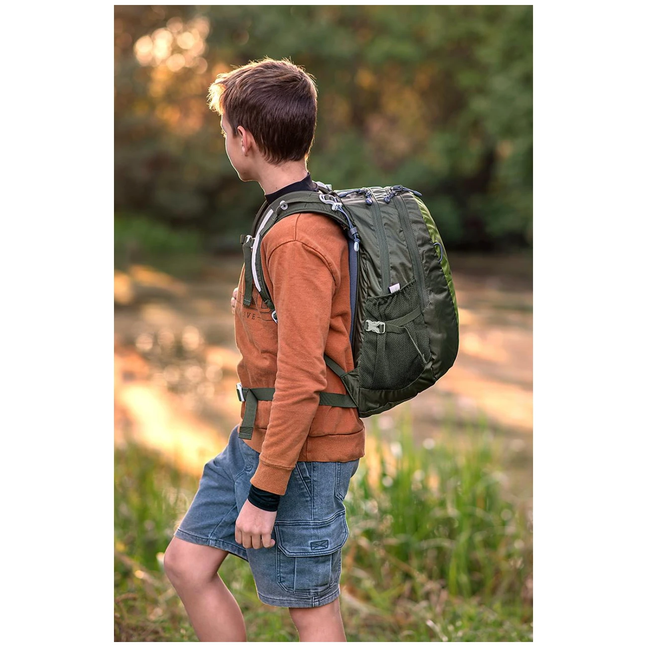 Der Hauptvorteil ist das ergonomische Rückensystem mit Belüftung, das an Kinder angepasst ist, und der stabile Sitz des Rucksacks auf dem Rücken. Verstellbare Schultergurte, Brust- und Hüftgurt tragen dazu bei. Im Inneren befindet sich ein Hauptfach mit einer Netztasche mit Reißverschluss, eine vordere 3D-Tasche mit Reißverschluss und zwei seitliche Netztaschen für Trinkflaschen. Selbstverständlich sind reflektierende Elemente, die die Sichtbarkeit von Kindern bei schlechtem Wetter erhöhen.