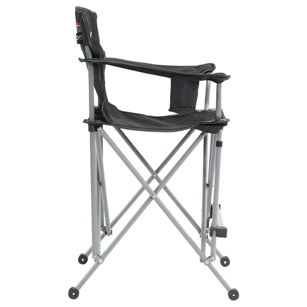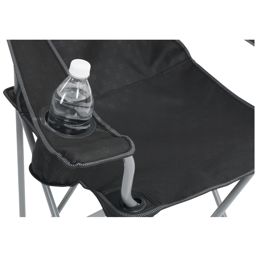 Selbstverständlich verfügt es über eine solide Stahlkonstruktion und einen robusten Polyesterbezug. Auf der rechten Seite verfügt der Stuhl über einen Getränkeflaschenhalter.
