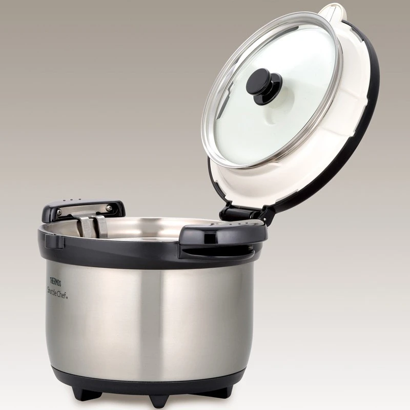 Thermos Shuttle Chef ist ein vakuumisolierter Kochtopf, der für sparsames, gesundes und bequemes Kochen ohne ständige Aufsicht entwickelt wurde. Es wurde bereits 1989 in Japan eingeführt und hat seitdem große Beliebtheit bei Outdoor-Enthusiasten für die einfache Zubereitung von Speisen in Hütten, auf Campingplätzen oder bei Familienfeiern im Garten gewonnen. Es eignet sich auch hervorragend zum normalen Kochen zu Hause. Sein Prinzip besteht darin, das Gericht auf einem normalen Kochfeld kurz zu erhitzen und anschließend durch Beibehaltung der eigenen Temperatur im isolierten Behälter, ohne weitere Energiezufuhr, fertig zu garen.