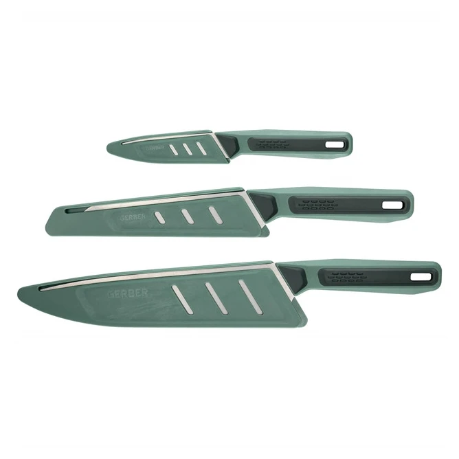 Das Gerber Compleat Knife Set ist ein praktisches Set aus drei Küchenmessern, das für die Natur, den Urlaub im Zelt, im Wohnwagen oder beim Camping konzipiert wurde. Damit müssen Sie Ihre Lieblingsmesser nicht mehr von zu Hause mitbringen – dieses Set ersetzt sie zuverlässig und ermöglicht Ihnen das Kochen im Freien genauso bequem wie in der Küche.