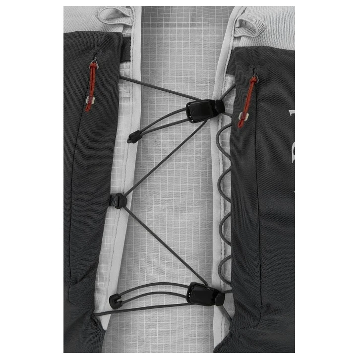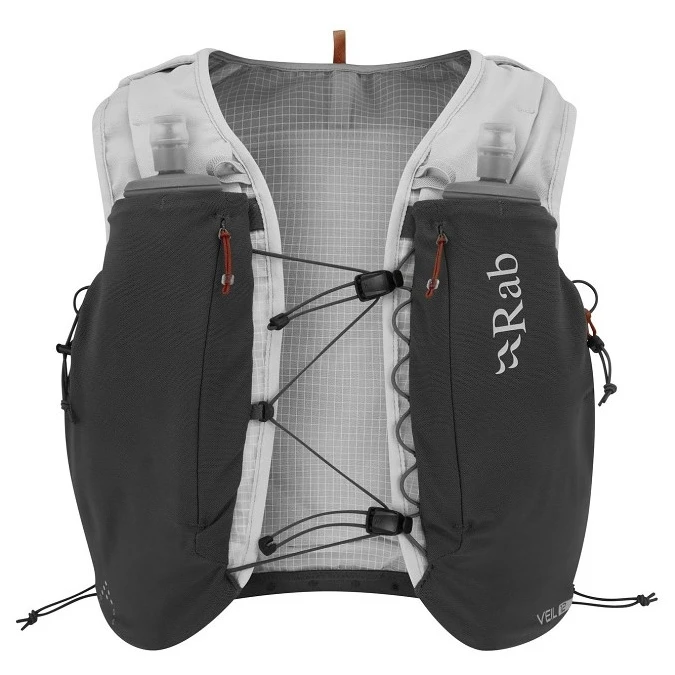 Laufweste Veil 12 der Marke Rab hat eine leichte Konstruktion mit atmungsaktivem Mesh und zahlreiche Taschen für die Aufbewahrung aller für das Laufen notwendiger Ausrüstung. Die Weste ist mit einer Trinkblase kompatibel (nicht im Lieferumfang enthalten) und enthält 2 leichte 500 ml Trinkflaschen.