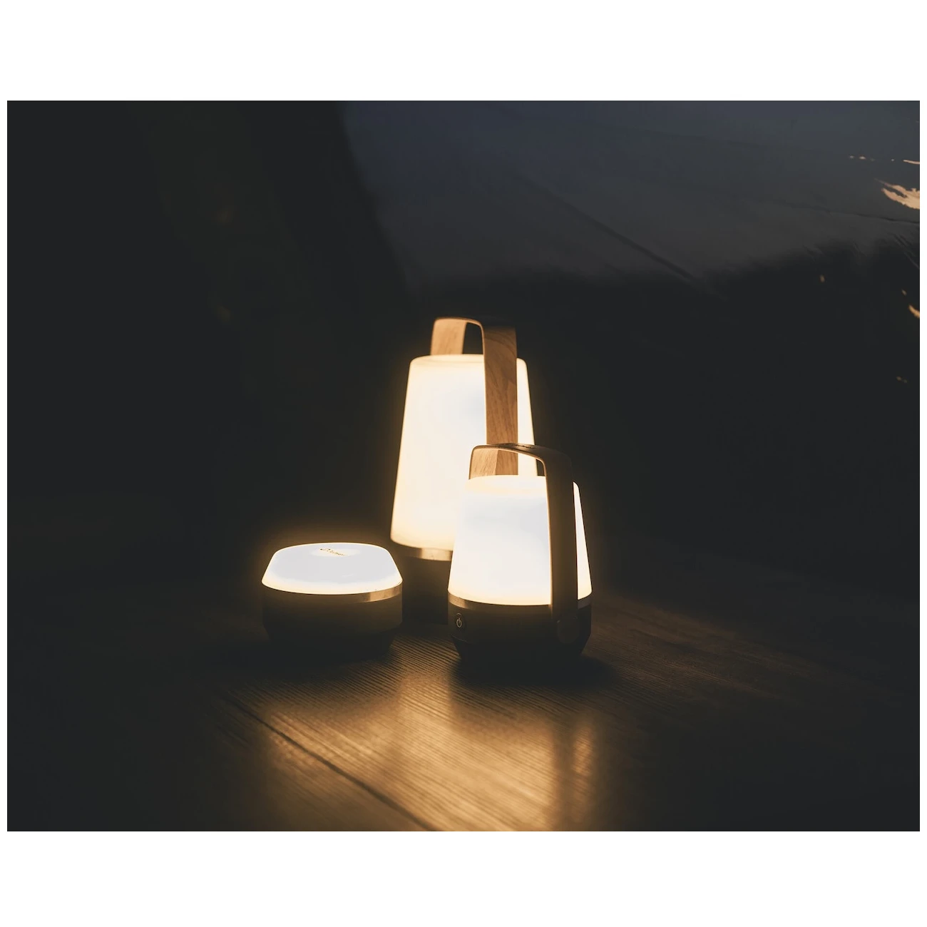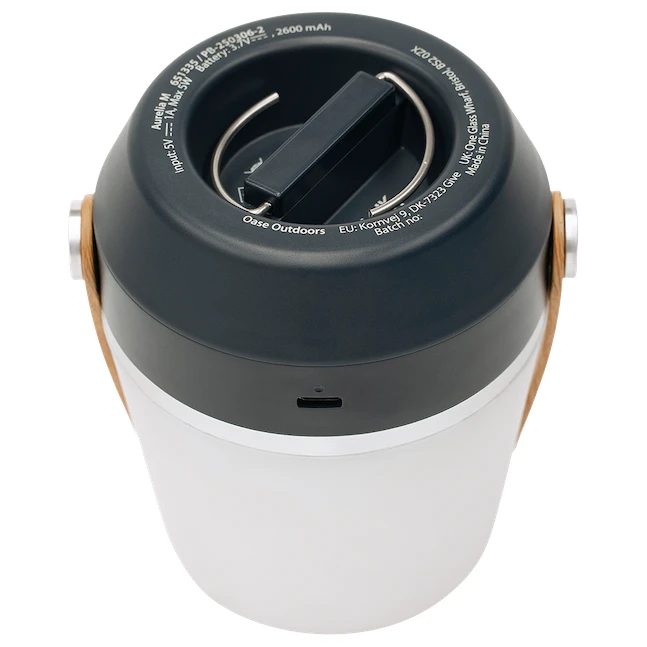 Die Lampe erzeugt ein angenehmes weiches Licht. Es ist freistehend, kann aber dank des Hakens auch an der Decke aufgehängt werden. Die Lichtintensität kann im Bereich von 10 bis 100 % eingestellt werden. Die maximale Intensität beträgt 300 Lumen. Betrieben wird sie mit einem wiederaufladbaren Li-Ionen-Akku, der über ein USB-C-Kabel aufgeladen wird. Je nach Intensität hält sie 6 bis 25 Stunden.
