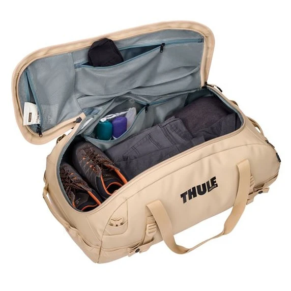 Die supercoole Sporttasche Chasm 70L der Marke Thule ist die perfekte Wahl für mehrtägige Abenteuer, bei denen sie ausreichend Stauraum für die nötige Ausrüstung bietet. Es besteht aus einem geräumigen Hauptfach mit extra breitem Eingang, zwei inneren Reißverschlusstaschen aus Netzmaterial und einer äußeren Reißverschlusstasche.