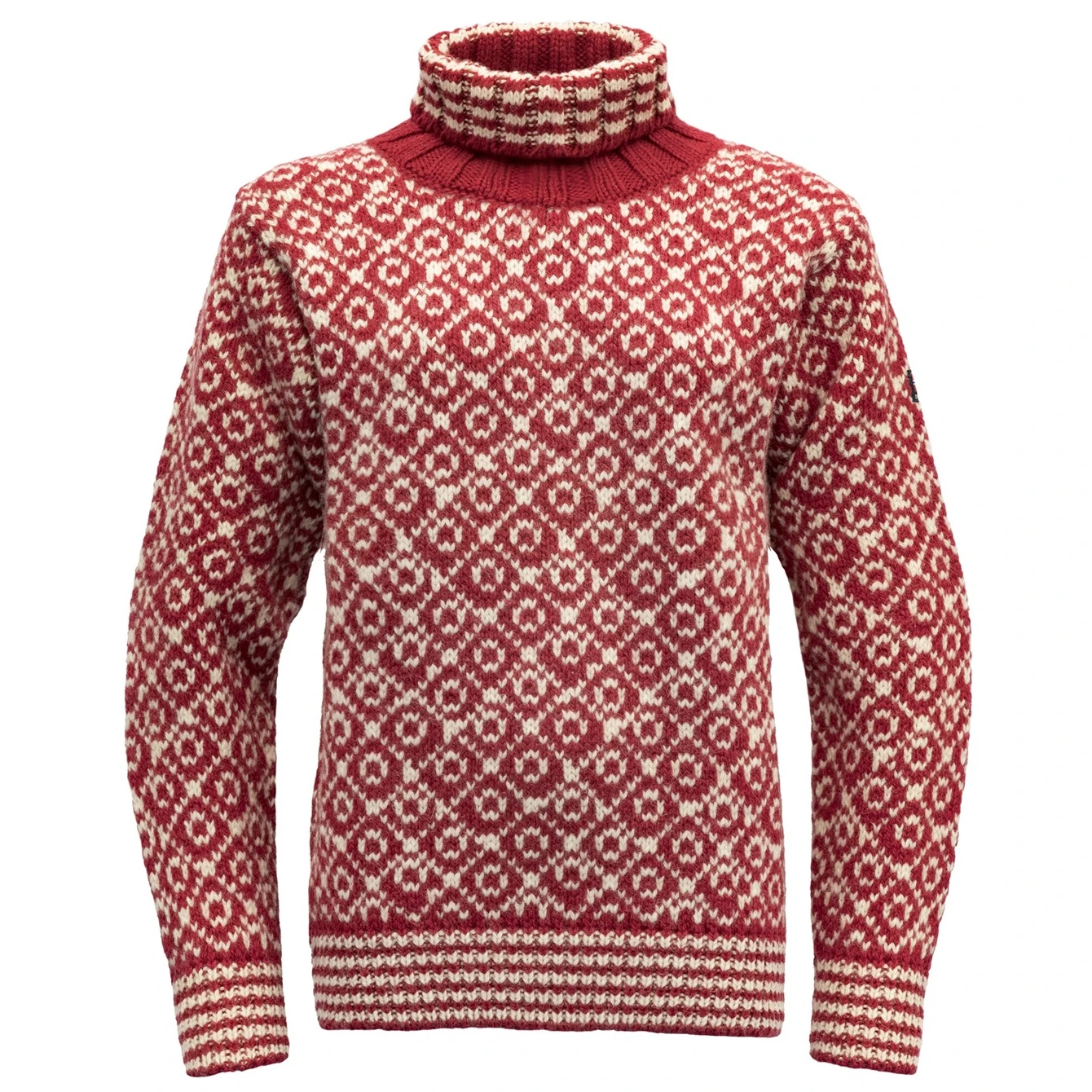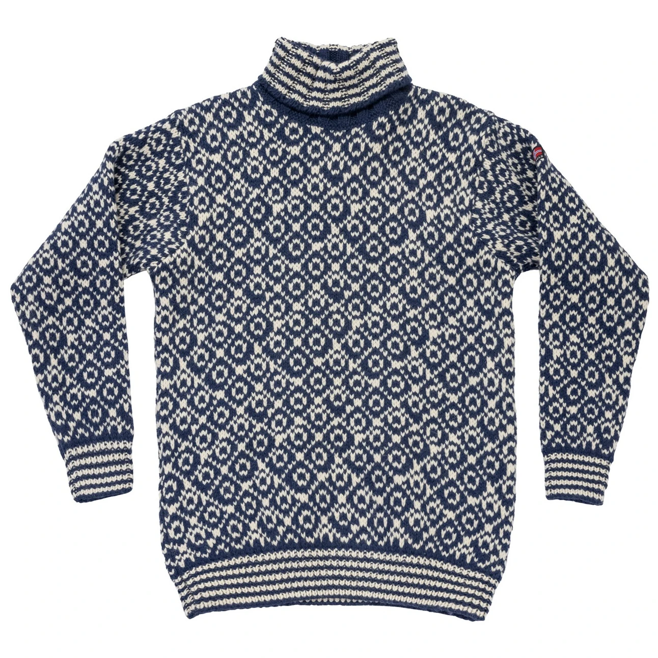 • stylischer Rollkragen mit traditionellem norwegischen Muster