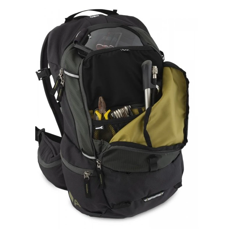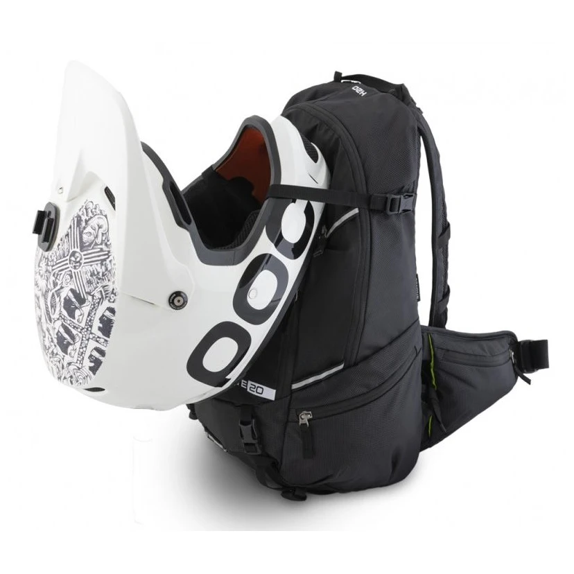 Der Rucksack verfügt außerdem über zahlreiche Schlaufen, dank denen Sie beispielsweise eine Taschenlampe oder die Taschen Bar Bagem und Bar Drybagem 8L am Rucksack befestigen können. Die Befestigung erfolgt mit dem Carry more-Gurtsystem. Kompatibel mit Helmhalter.
