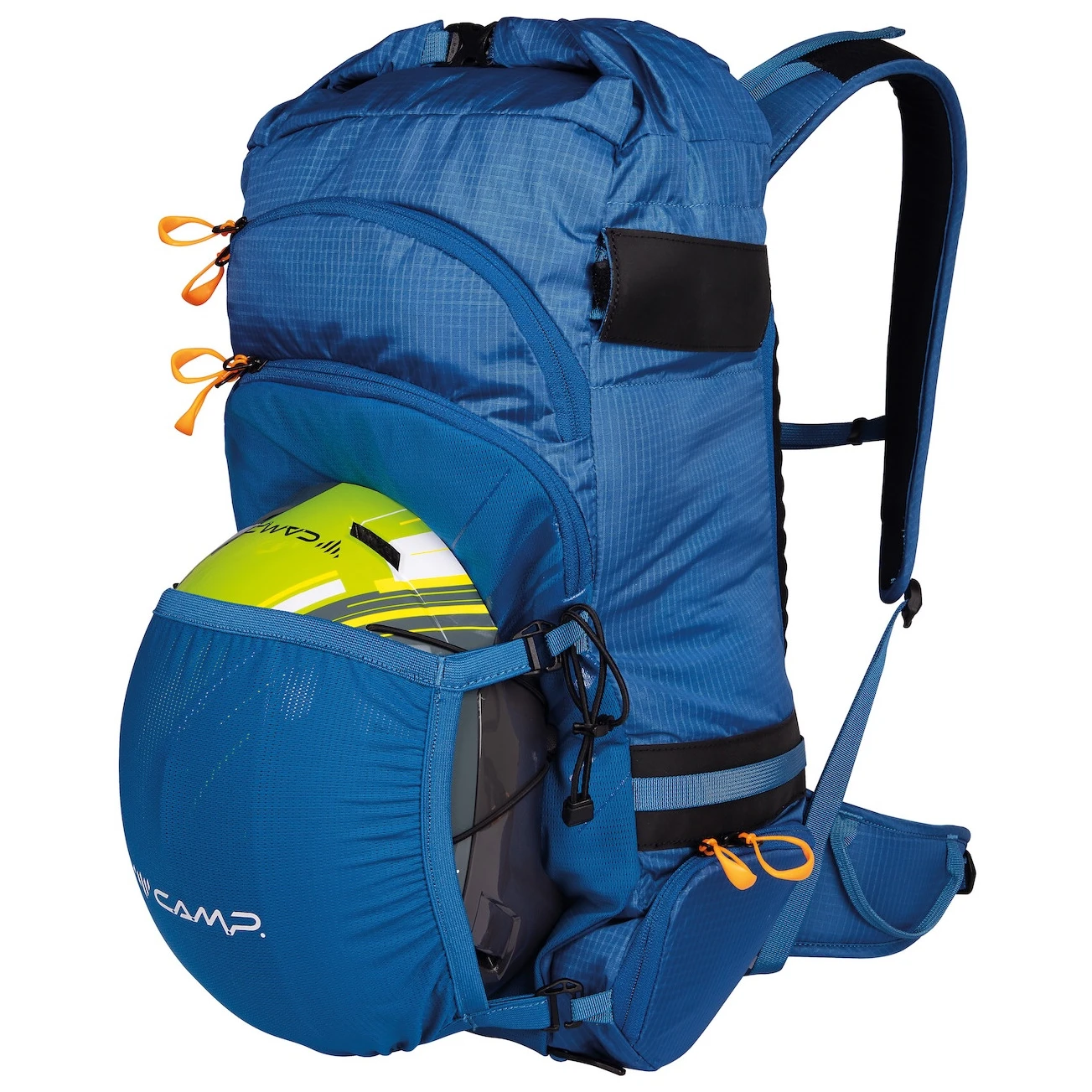 Das separate Lawinenfach ermöglicht einen schnellen Zugriff auf Schaufel und Sonde, während Sie das isolierte Steigeisenfach erreichen, ohne den Rucksack abzunehmen, es aber auch von innen öffnen können. Der Rucksack verfügt über verstellbare seitliche Schnellverschlüsse zur A-förmigen Skibefestigung, zwei versteckte Systeme zur Befestigung von Eisgeräten mit Halterungen für die Spitzen, eine Möglichkeit zur Helmbefestigung und Stockbefestigung.
