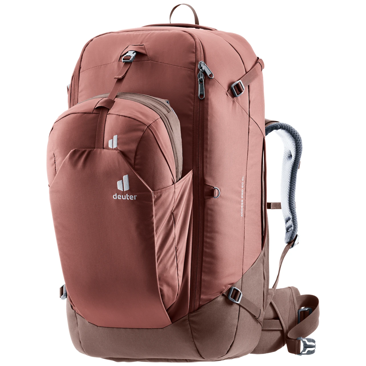 Damen-Reiserucksack Access Pro 60 SL der Marke Deuter ist sehr funktional und für jedes Abenteuer gerüstet. Hergestellt im Damenschnitt, d.h. mit kürzerem Rücken, schmaleren Schultern und einem der weiblichen Anatomie angepassten Schnitt.