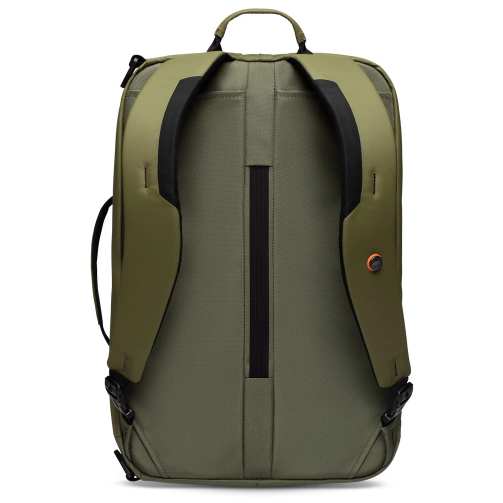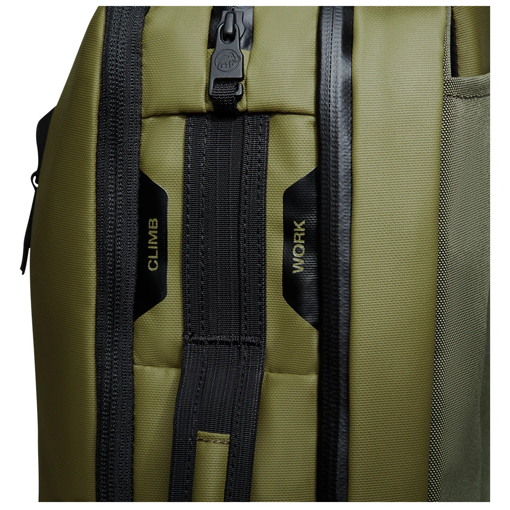 Der Seon 3-Way 20 Stadtrucksack von Mammut ist in zwei Fächer unterteilt, wobei jedes seinen eigenen Zugang hat. Ein Fach dient zur Aufbewahrung von Trainingssachen mit eigenem Reißverschluss und das andere Fach zur Aufbewahrung von Arbeitssachen mit Zugang von hinten und einem Laptopfach. Der Rucksack hat gepolsterte Schultergurte, 2 Griffe zum Tragen in der Hand und eine wasserdichte Tasche für Wertsachen.