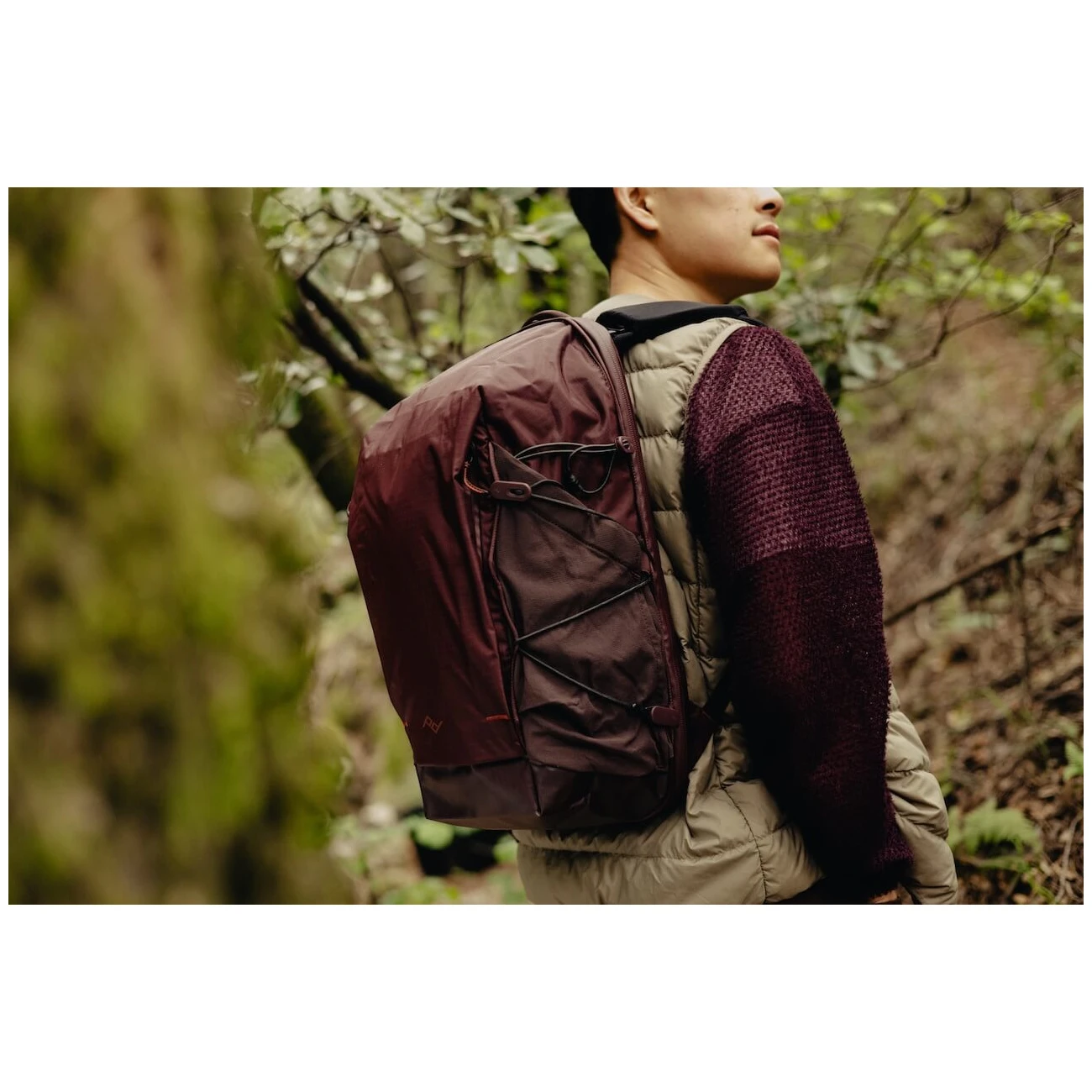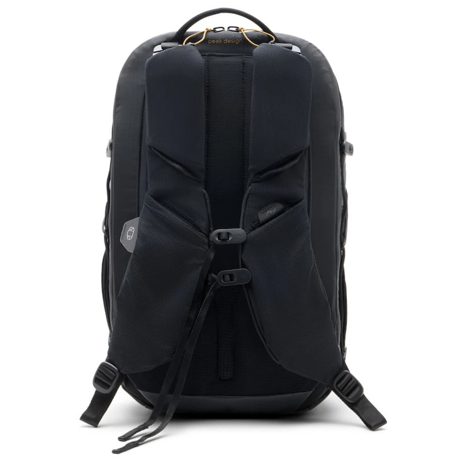 Der Rucksack ist so konzipiert, dass er perfekt mit einer breiten Palette von Peak Design Organizern* zusammenarbeitet, die eine übersichtliche und sichere Organisation der Ausrüstung – einschließlich der Kamera – ermöglichen. Die von Laufwesten inspirierten Schultergurte verteilen die Last über einen Großteil des Körpers und bieten zwei elastische Netztaschen für Kleinigkeiten oder Soft Flasks.