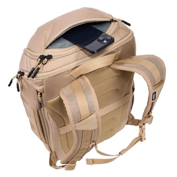 - bequemer Zugriff auf Telefon und kleine Gegenstände in der oberen Reißverschlusstasche mit weicher Auskleidung und Netzseitenwänden