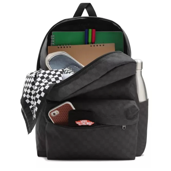 Rucksack Vans Der MN Old Skool Check Rucksack hat ein großes Hauptfach, eine Fronttasche mit Reißverschluss und Organizer sowie bequem gepolsterte Schultergurte für mehr Tragekomfort. Auf der Vorderseite befindet sich das Logo Vans.