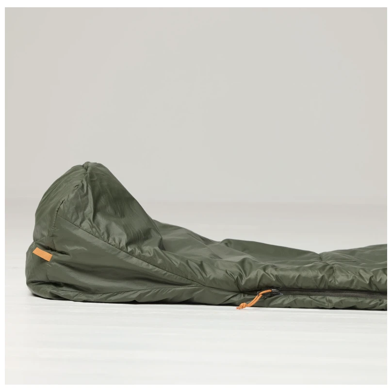 Der Schlafsack hat einen Mumienschnitt, eine schmale Kapuze mit einfacher Verstellung und einen anatomisch geformten Fußbereich für mehr Komfort der Füße. Der durchgehende Zwei-Wege-Reißverschluss ist mit einer Windschutzleiste und einem oberen Schieber gegen das Verhaken des Stoffes ausgestattet. Innen gibt es eine Tasche für Kleinigkeiten und unten Aufhängeschlaufen zum einfachen Lüften oder Verstauen. Er wird mit einem Kompressionsbeutel geliefert und ist für Personen bis 190 cm geeignet.