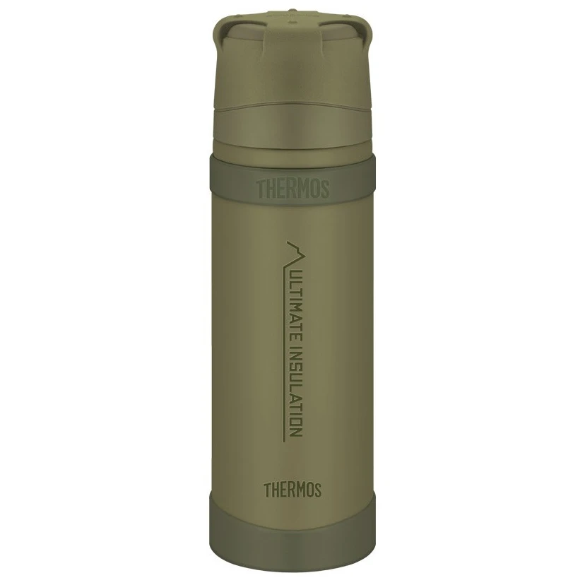 Die doppelwandige vakuumisolierte Edelstahl-Thermoskanne Mountain FFX von Thermos ist weltweit führend im Bereich der Outdoor-Thermoskannen. Eine Thermoskanne mit besseren Parametern werden Sie derzeit (2019) nicht finden. Dieses Modell ist für extremste Bedingungen konzipiert und verfügt daher über Funktionen, die den Anforderungen an eine Flasche für die Bergwelt entsprechen, wie z. B. einfaches Öffnen und Schließen, Stoßfestigkeit, geringes Gewicht, Kompaktheit und natürlich hohe Isolierleistung. Dank Letzterem kann die Thermoskanne das Getränk sehr lange warm halten.