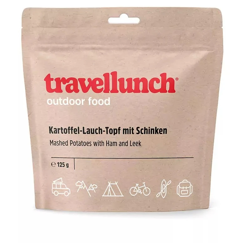 Profi-Dörrfutter Travellunch Kartoffelpüree mit Schinken und Lauch enthält alle wichtigen Stoffe für den menschlichen Körper auch bei extremer Leistung und schmeckt dazu noch hervorragend.