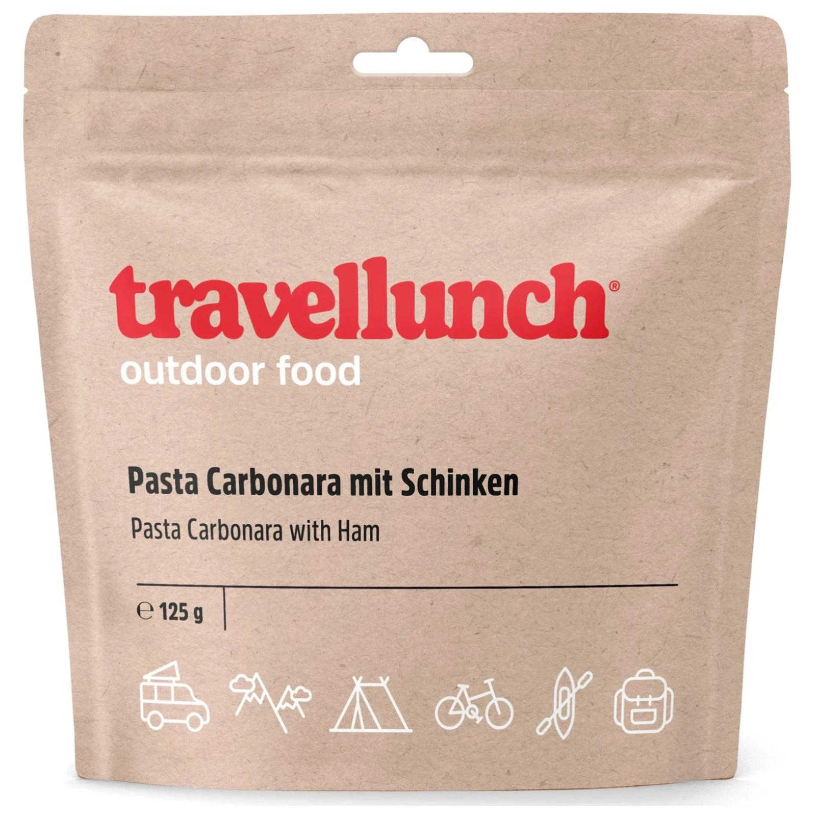 Profi-Dehydrierungsnahrung Travellunch Spaghetti Carbonara mit Schinken enthält alle wichtigen Stoffe für den menschlichen Körper auch bei extremen Leistungen und schmeckt dazu noch hervorragend.