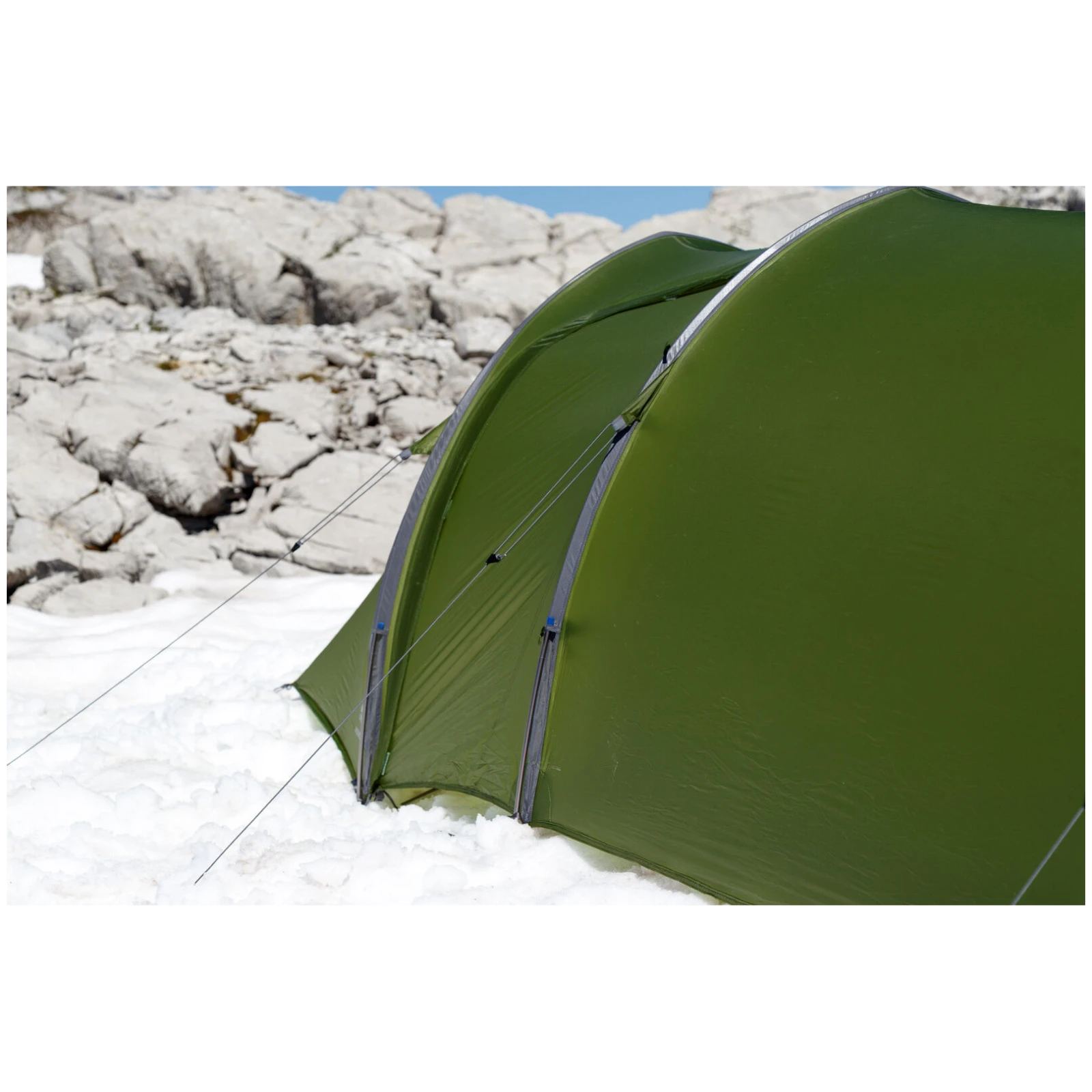 Das Zelt ist mit leichten und strapazierfähigen PowerLite Plus-Stangen, voll verklebten Nähten und einer "O"-förmigen Innentür für eine einfache Bedienung des Reißverschlusses mit einer Hand ausgestattet. Hochfeste Dyneema-Kernleinen und Mini-High-Grip-Guyline-Runners sorgen für eine stabile Zeltspannung, während die Dyneema-Abspannpunkte den Einsatz von Skiern oder Schneetauen ermöglichen. Die Fast-Pack-Zeltasche mit Kompressionsriemen erleichtert das Packen und minimiert das Transportvolumen.