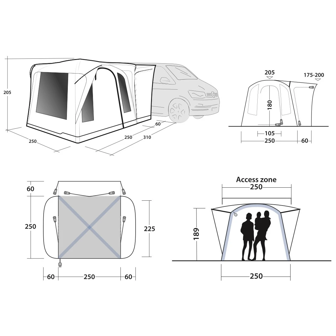 - 310 x 250 x 205 cm