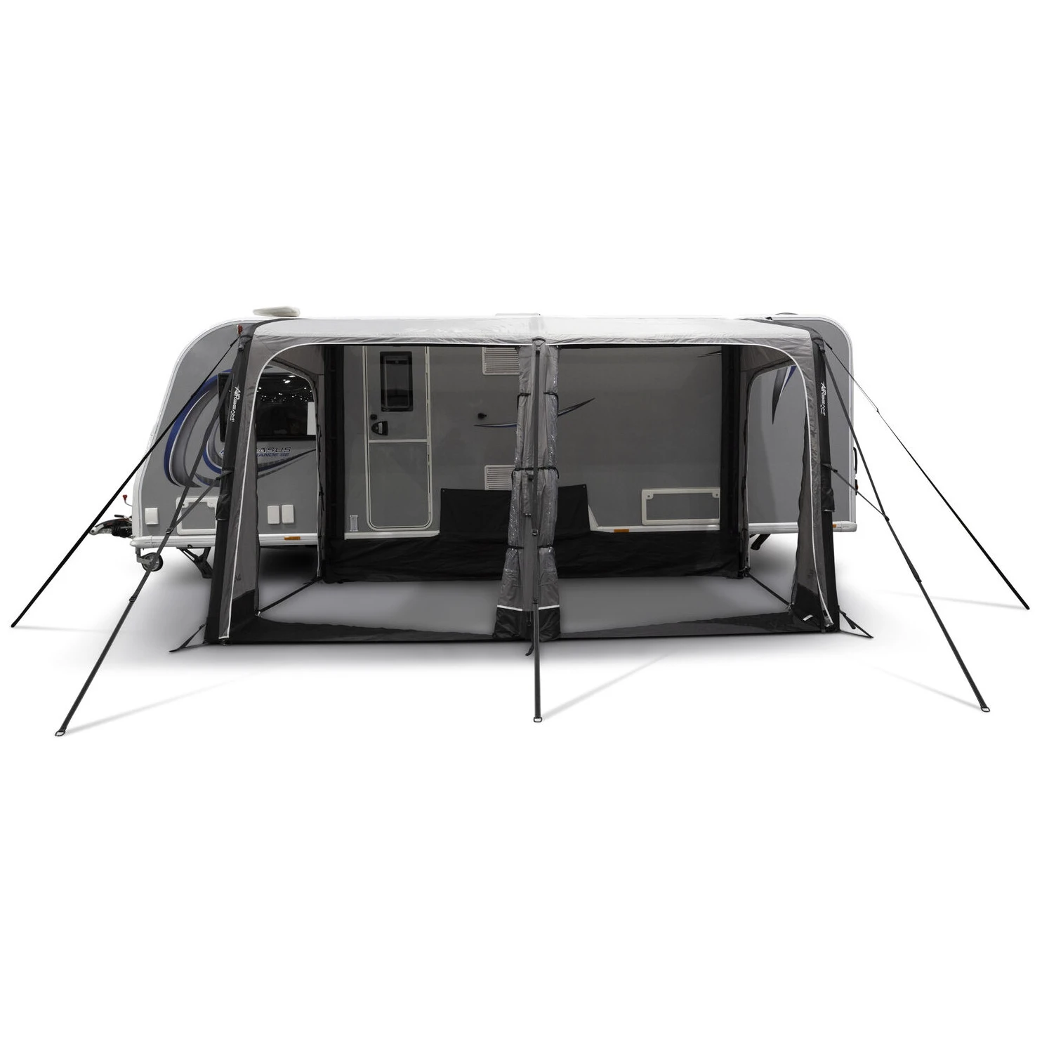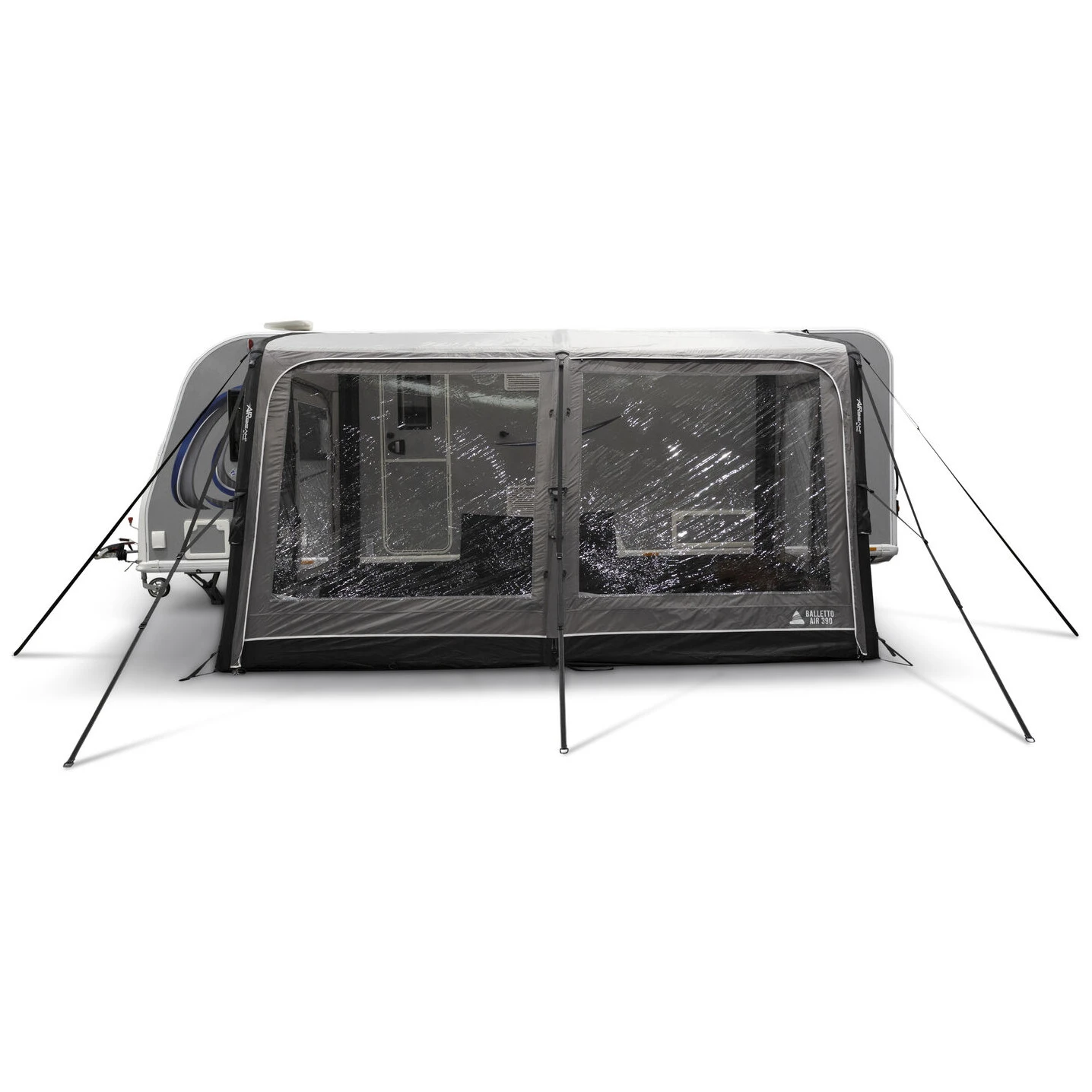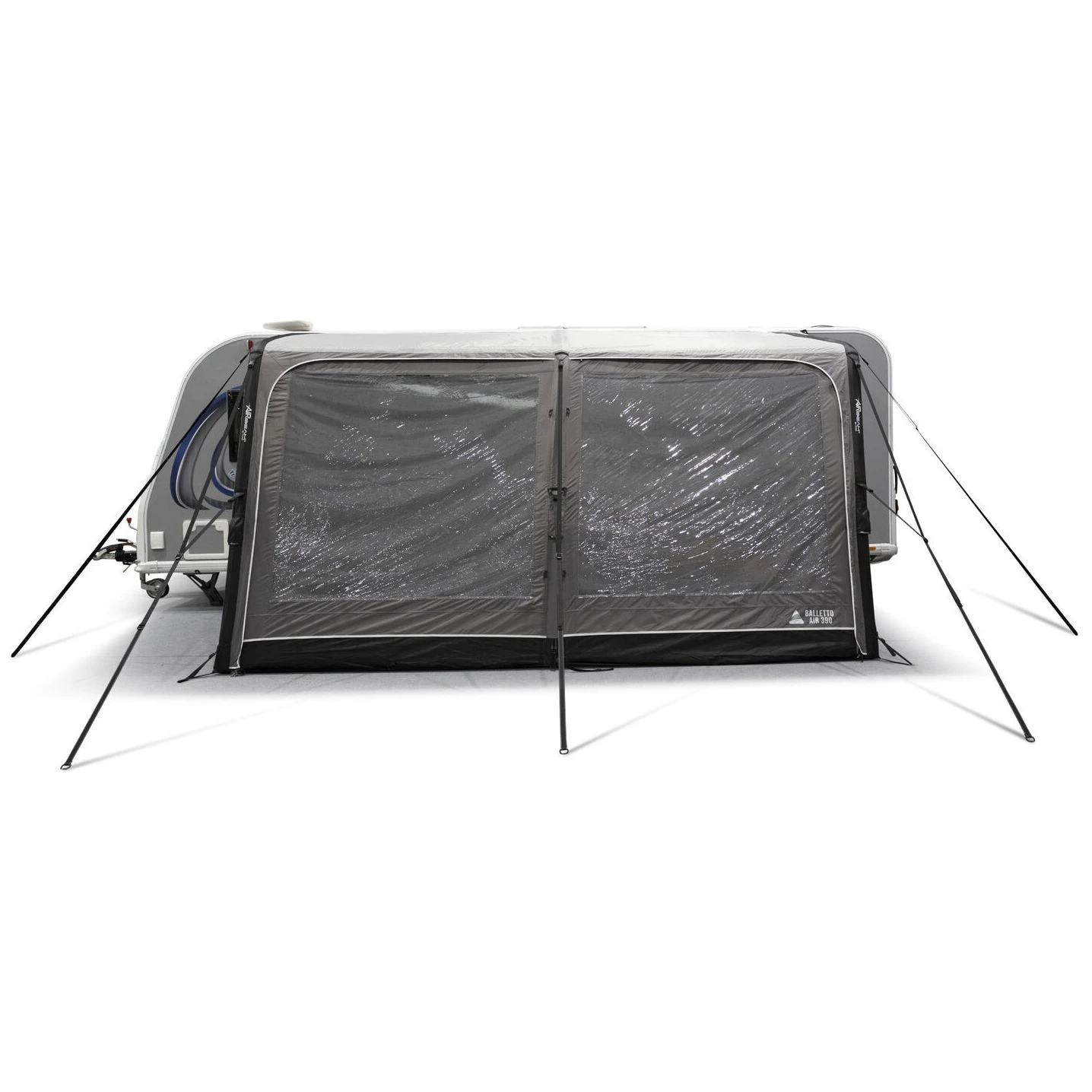 Balletto Air 390 ist dank des verstellbaren Kador-Systems und der Möglichkeit, die Höhe im Bereich von 235 bis 250 cm anzupassen, mit verschiedenen Wohnwagentypen kompatibel. Durchdachte Details wie das Windschutzsystem 2.0, abnehmbare Seitentüren, eine geteilte Eingangstür im Verhältnis 60/40 oder das Aufhängesystem SkyTrack II sorgen für hohe Variabilität und Komfort bei jedem Camping.