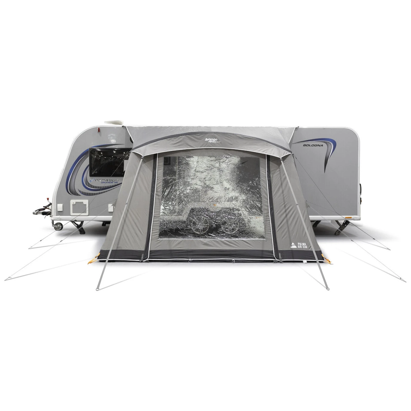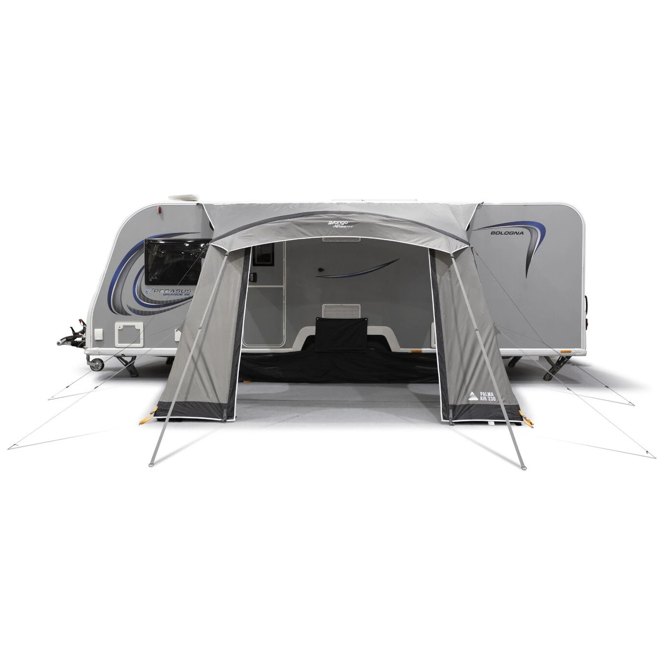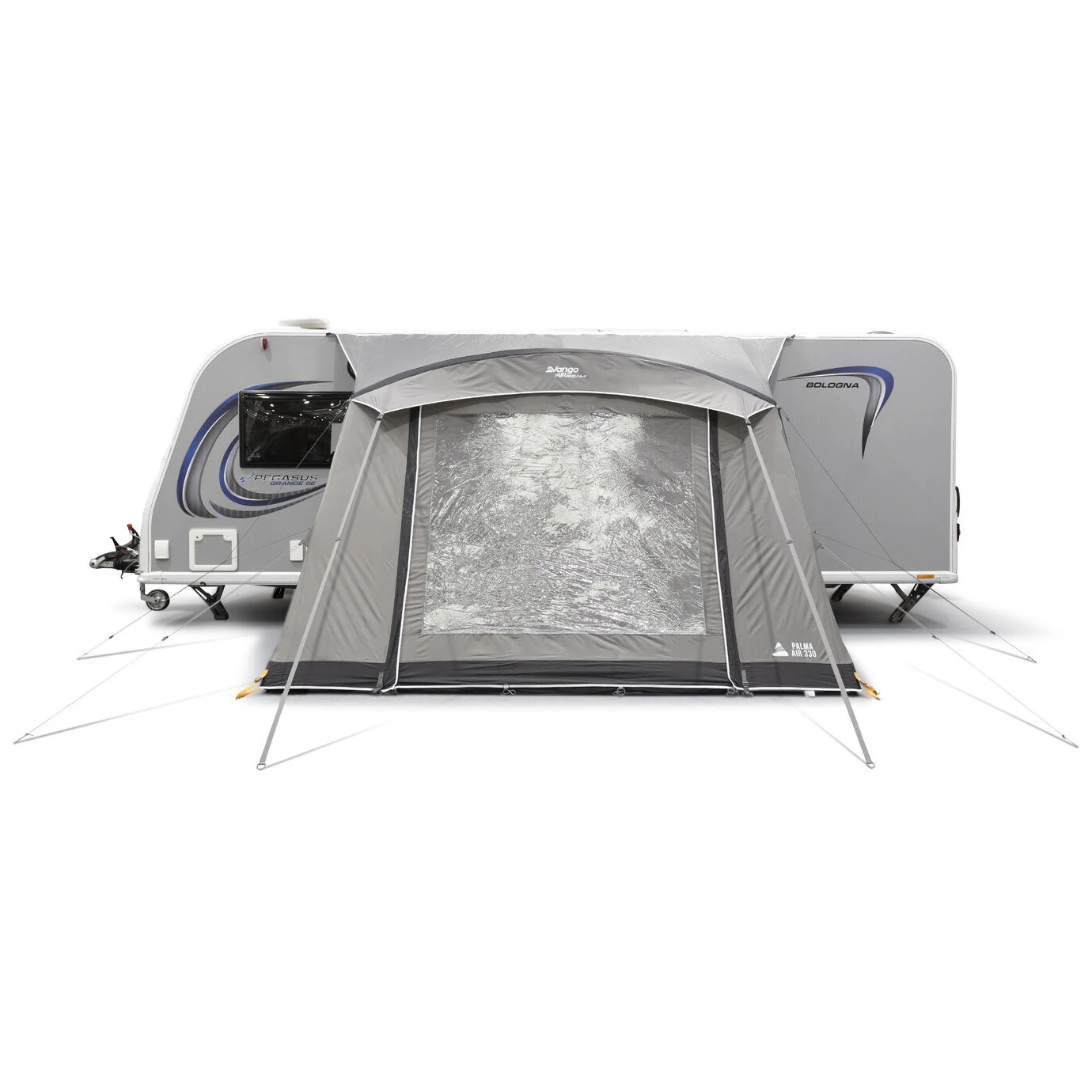 Das Vorzelt Palma Air 330 von Vango ist praktisch, leicht und für Komfort und einfachen Aufbau auf Reisen konzipiert. Dank seiner kompakten Tiefe von 2,4 m ist es auch für enge Stellplätze geeignet und bietet dennoch ausreichend Platz über dem Kopf, flexiblen Essbereich und Stauraum.